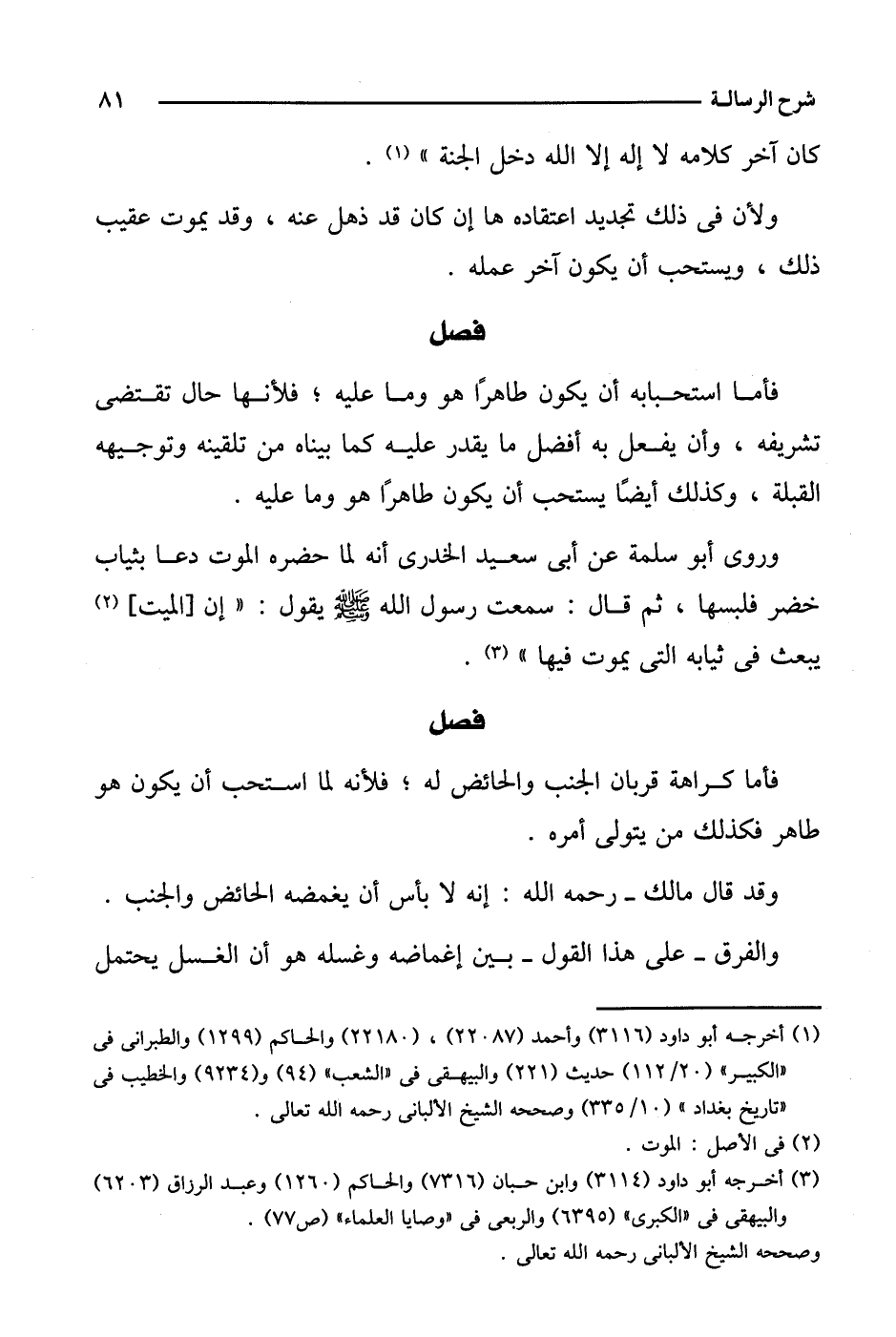 وروى أبو سلمة عن أبي سعيد الخدري أنه لما حضره الموت دعا بثياب خضر فلبسها، ثم قال: سمعت رسول الله صلى الله عليه وسلم يقول: "وإن [الميت] يبعث في ثيابه التي يموت فيها".