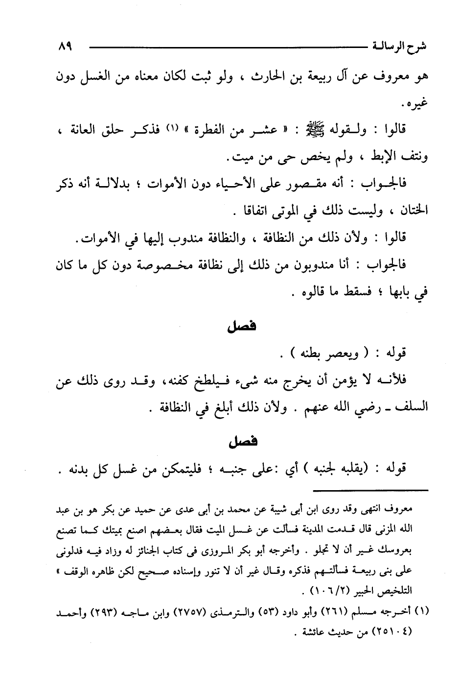 فالجواب: أنا مندوبون من ذلك إلى نظافة مخصوصة دون كل ما كان في بابها؛ فيسقط ما قالوه.