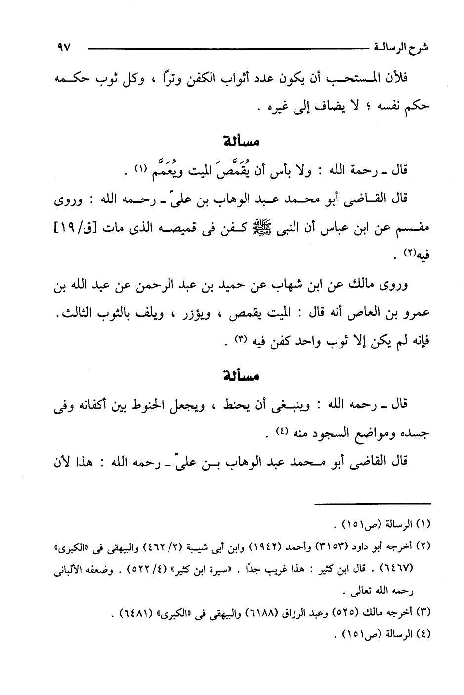 قال القاضي أبو محمد عبد الوهاب بن علي- رحمه الله: وروى مقسم عن ابن عباس أن النبي صلى الله عليه وسلم كفن في قميصه الذي مات [ق/19] فيه.