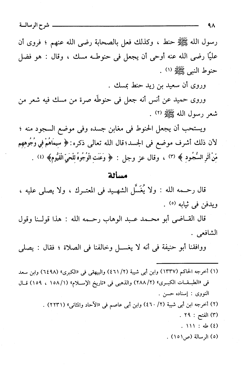 رسول الله صلى الله عليه وسلم حنط، وكذلك فعل بالصحابة رضي الله عنهم؛ فروى أن عليا رضي الله عنه أوحى أن يجعل في حنوطه مسك، وقال: هو فضل حنوط النبي صلى الله عليه وسلم.