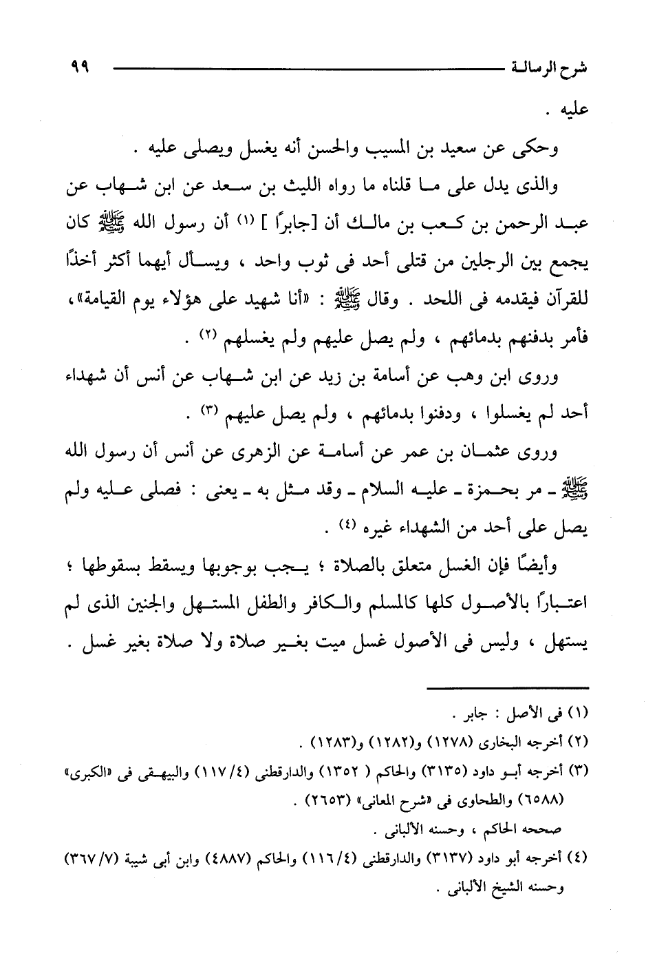 وروى عثمان بن عمر عن أسامة عن الزهري عن أنس أن رسول الله صلى الله عليه وسلم- مر بحمزة- عليه السلام- وقد مثل به- يعني: فصلى عليه ولم يصل على أحد من الشهداء غيره.