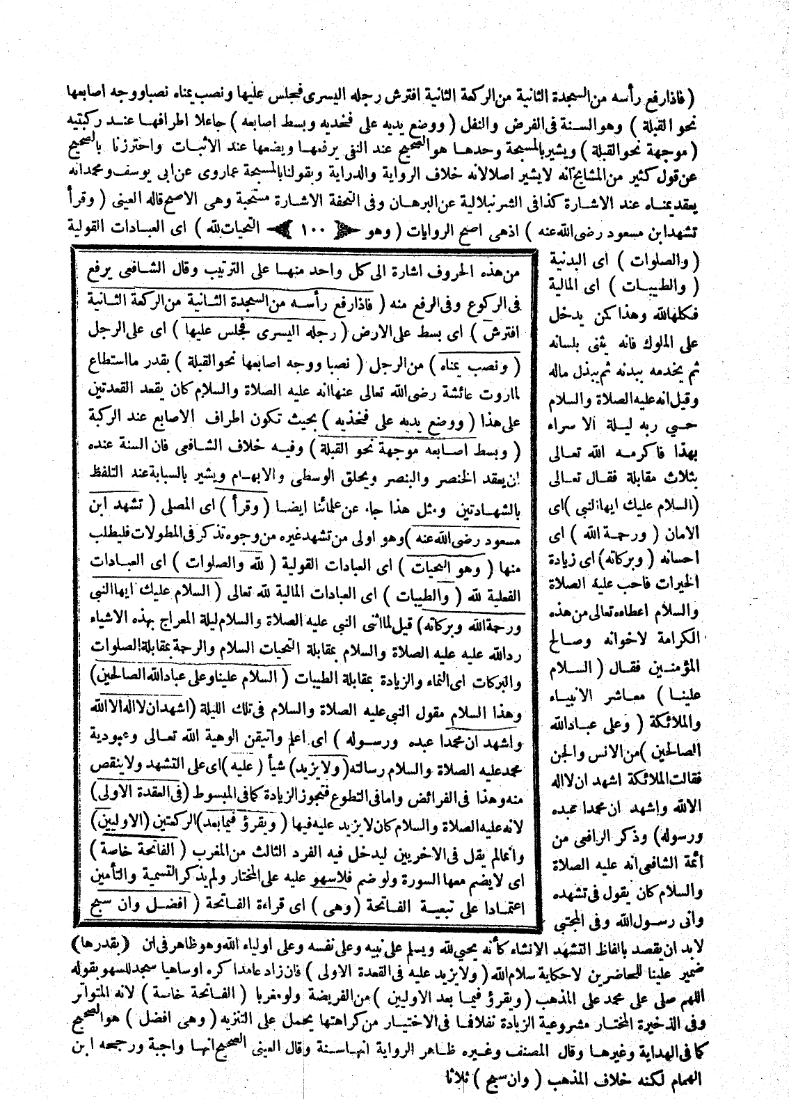 (وَقَرَأَ) أَيْ الْمُصَلِّي (تَشَهُّدَ ابْنِ مَسْعُودٍ - رَضِيَ اللَّهُ عَنْهُ -) وَهُوَ أَوْلَى مِنْ تَشَهُّدِ غَيْرِهِ مِنْ وُجُوهٍ تُذْكَرُ فِي الْمُطَوَّلَاتِ فَلْيُطْلَبْ مِنْهَا (وَهُوَ التَّحِيَّاتُ) أَيْ الْعِبَادَاتُ الْقَوْلِيَّةُ (لِلَّهِ وَالصَّلَوَاتُ) أَيْ: الْعِبَادَاتُ الْفِعْلِيَّةُ لِلَّهِ (وَالطَّيِّبَاتُ) أَيْ الْعِبَادَاتُ الْمَالِيَّةُ لِلَّهِ تَعَالَى (السَّلَامُ عَلَيْك أَيُّهَا النَّبِيُّ وَرَحْمَةُ اللَّهِ وَبَرَكَاتُهُ) قِيلَ لَمَّا أَثْنَى النَّبِيُّ - عَلَيْهِ الصَّلَاةُ وَالسَّلَامُ - لَيْلَةَ الْمِعْرَاجِ بِهَذِهِ الْأَشْيَاءِ رَدَّ اللَّهُ عَلَيْهِ - عَلَيْهِ الصَّلَاةُ وَالسَّلَامُ - بِمُقَابَلَةِ التَّحِيَّاتِ السَّلَامَ وَالرَّحْمَةَ بِمُقَابَلَةِ الصَّلَوَاتِ وَالْبَرَكَاتِ أَيْ النَّمَاءَ وَالزِّيَادَةَ بِمُقَابَلَةِ الطَّيِّبَاتِ (السَّلَامُ عَلَيْنَا وَعَلَى عِبَادِ اللَّهِ الصَّالِحِينَ) وَهَذَا السَّلَامُ مَقُولُ النَّبِيِّ - عَلَيْهِ الصَّلَاةُ وَالسَّلَامُ - فِي تِلْكَ اللَّيْلَةِ (أَشْهَدُ أَنْ لَا إلَهَ إلَّا اللَّهُ وَأَشْهَدُ أَنَّ مُحَمَّدًا عَبْدُهُ وَرَسُولُهُ) أَيْ أَعْلَمُ وَأَتَيَقَّنُ أُلُوهِيَّةَ اللَّهِ - تَعَالَى - وَعُبُودِيَّةَ مُحَمَّدٍ - عَلَيْهِ الصَّلَاةُ وَالسَّلَامُ - وَرِسَالَتَهُ.