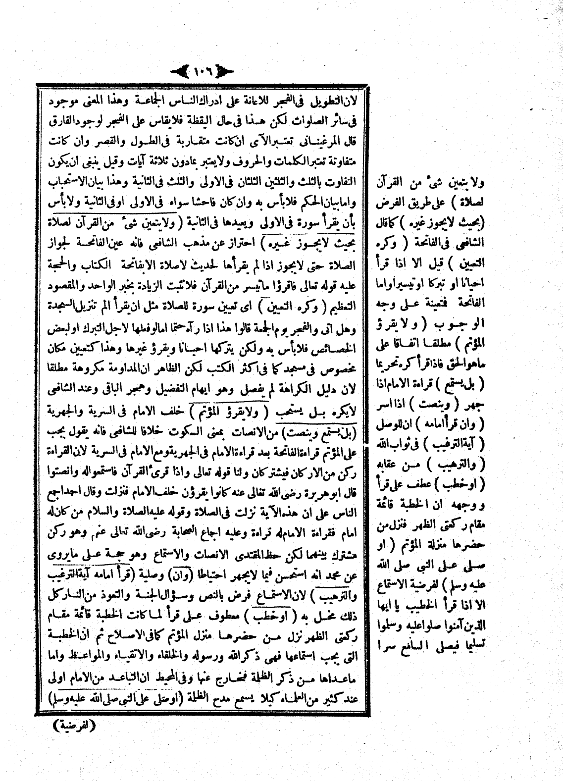 وَقَالَ أَحْمَدُ أَجْمَعَ النَّاسُ عَلَى أَنَّ هَذِهِ الْآيَةَ نَزَلَتْ فِي الصَّلَاةِ وَقَوْلُهُ - عَلَيْهِ الصَّلَاةُ وَالسَّلَامُ - «مَنْ كَانَ لَهُ إمَامٌ فَقِرَاءَةُ الْإِمَامِ لَهُ قِرَاءَةٌ» وَعَلَيْهِ إجْمَاعُ الصَّحَابَةِ - رَضِيَ اللَّهُ تَعَالَى عَنْهُمْ - وَهُوَ رُكْنٌ مُشْتَرَكٌ بَيْنَهُمَا لَكِنَّ حَظَّ الْمُقْتَدِي الْإِنْصَاتُ وَالِاسْتِمَاعُ، وَهُوَ حُجَّةٌ عَلَى مَا يُرْوَى عَنْ مُحَمَّدٍ أَنَّهُ اسْتَحْسَنَ فِيمَا لَا يَجْهَرُ احْتِيَاطًا (وَإِنْ) وَصْلِيَّةٌ (قَرَأَ إمَامُهُ آيَةَ التَّرْغِيبِ وَالتَّرْهِيبِ) ؛ لِأَنَّ الِاسْتِمَاعَ فَرْضٌ بِالنَّصِّ، وَسُؤَالُ الْجَنَّةِ وَالتَّعَوُّذُ مِنْ النَّارِ كُلُّ ذَلِكَ مُخِلٌّ بِهِ (أَوْ خَطَبَ) مَعْطُوفٌ عَلَى قَرَأَ لَمَّا كَانَتْ الْخُطْبَةُ قَائِمَةً مَقَامَ رَكْعَتَيْ الظُّهْرِ نَزَّلَ مَنْ حَضَرَهَا مَنْزِلَ الْمُؤْتَمِّ كَمَا فِي الْإِصْلَاحِ ثُمَّ إنَّ الْخُطْبَةَ الَّتِي يَجِبُ اسْتِمَاعُهَا فَهِيَ ذِكْرُ اللَّهِ وَرَسُولِهِ وَالْخُلَفَاءِ وَالْأَتْقِيَاءِ وَالْمَوَاعِظِ وَأَمَّا مَا عَدَاهَا مِنْ ذِكْرِ الظَّلَمَةِ فَخَارِجٌ عَنْهَا.