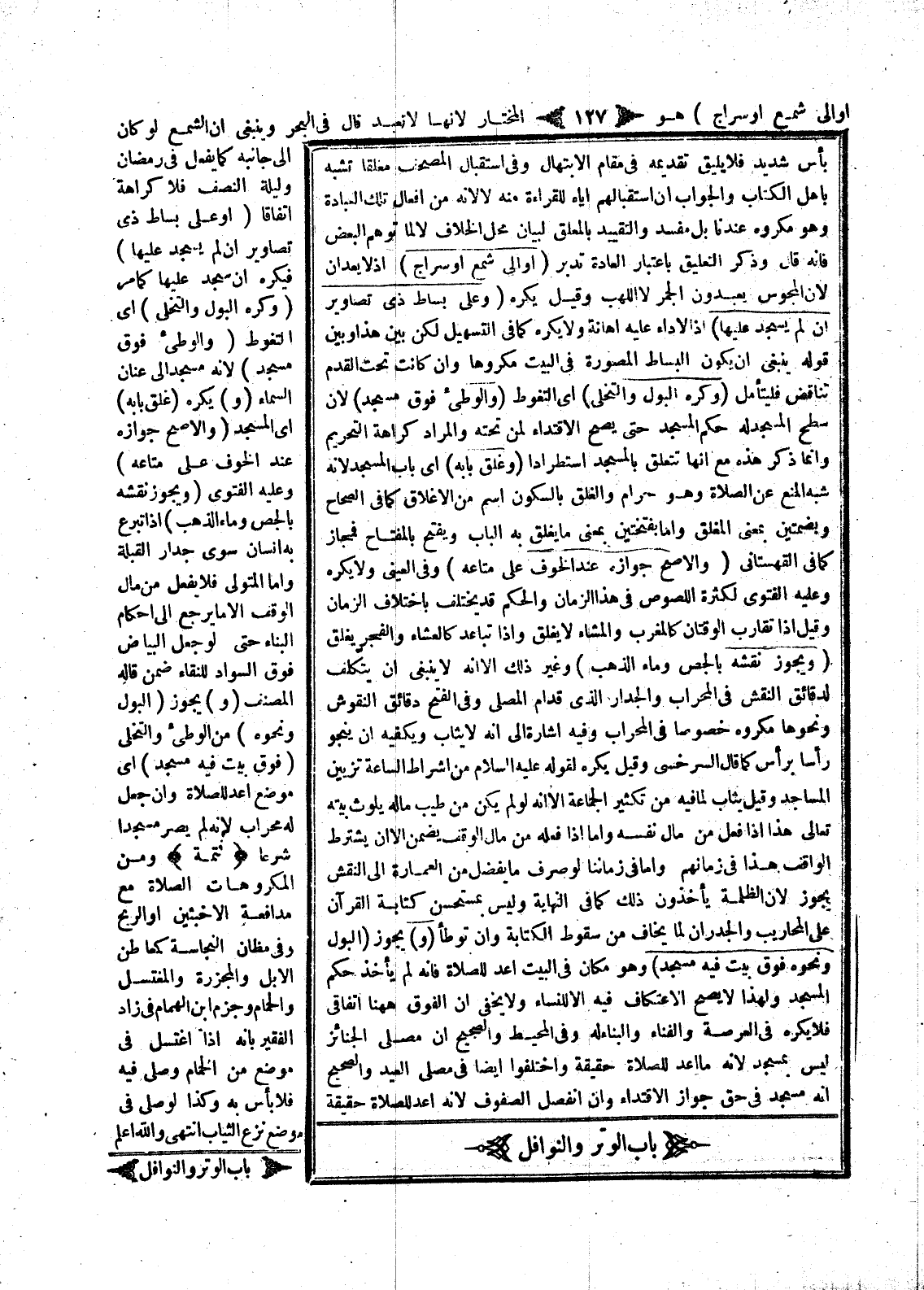 بَأْسٌ شَدِيدٌ فَلَا يَلِيقُ تَقْدِيمُهُ فِي مَقَامِ الِابْتِهَالِ وَفِي اسْتِقْبَالِ الْمُصْحَفِ مُعَلَّقًا تَشَبُّهٌ بِأَهْلِ الْكِتَابِ، وَالْجَوَابُ أَنَّ اسْتِقْبَالَهُمْ إيَّاهُ لِلْقِرَاءَةِ مِنْهُ لَا لِأَنَّهُ مِنْ أَفْعَالِ تِلْكَ الْعِبَادَةِ وَهُوَ مَكْرُوهٌ عِنْدَنَا بَلْ مُفْسِدٌ، وَالتَّقْيِيدُ بِالْمُعَلَّقِ لِبَيَانِ مَحَلِّ الْخِلَافِ لَا لِمَا تَوَهَّمَ الْبَعْضُ فَإِنَّهُ قَالَ: وَذِكْرُ التَّعْلِيقِ بِاعْتِبَارِ الْعَادَةِ، تَدَبَّرْ (أَوْ إلَى شَمْعٍ أَوْ سِرَاجٍ) إذْ لَا يُعْبَدَانِ لِأَنَّ الْمَجُوسَ يَعْبُدُونَ الْجَمْرَ لَا اللَّهَبَ وَقِيلَ: يُكْرَهُ.