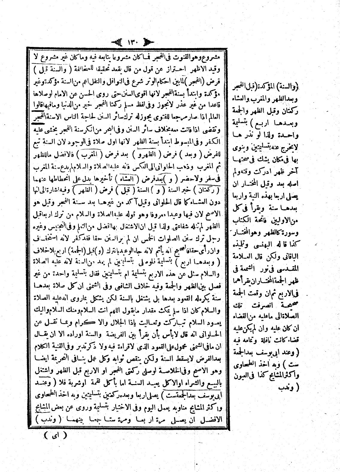 وَفِي لَفْظِ مُسْلِمٍ «رَكْعَتَا الْفَجْرِ خَيْرٌ مِنْ الدُّنْيَا وَمَا فِيهَا» قَالُوا الْعَالِمُ إذَا صَارَ مَرْجِعًا لِلْفَتْوَى يَجُوزُ لَهُ تَرْكُ سَائِرِ السُّنَنِ لِحَاجَةِ النَّاسِ إلَّا سُنَّةَ الْفَجْرِ وَتُقْضَى إذَا فَاتَتْ مَعَهُ بِخِلَافِ سَائِرِ السُّنَنِ وَفِي الْبَحْرِ مَنْ أَنْكَرَ سُنَّةَ الْفَجْرِ يُخْشَى عَلَيْهِ الْكُفْرُ.