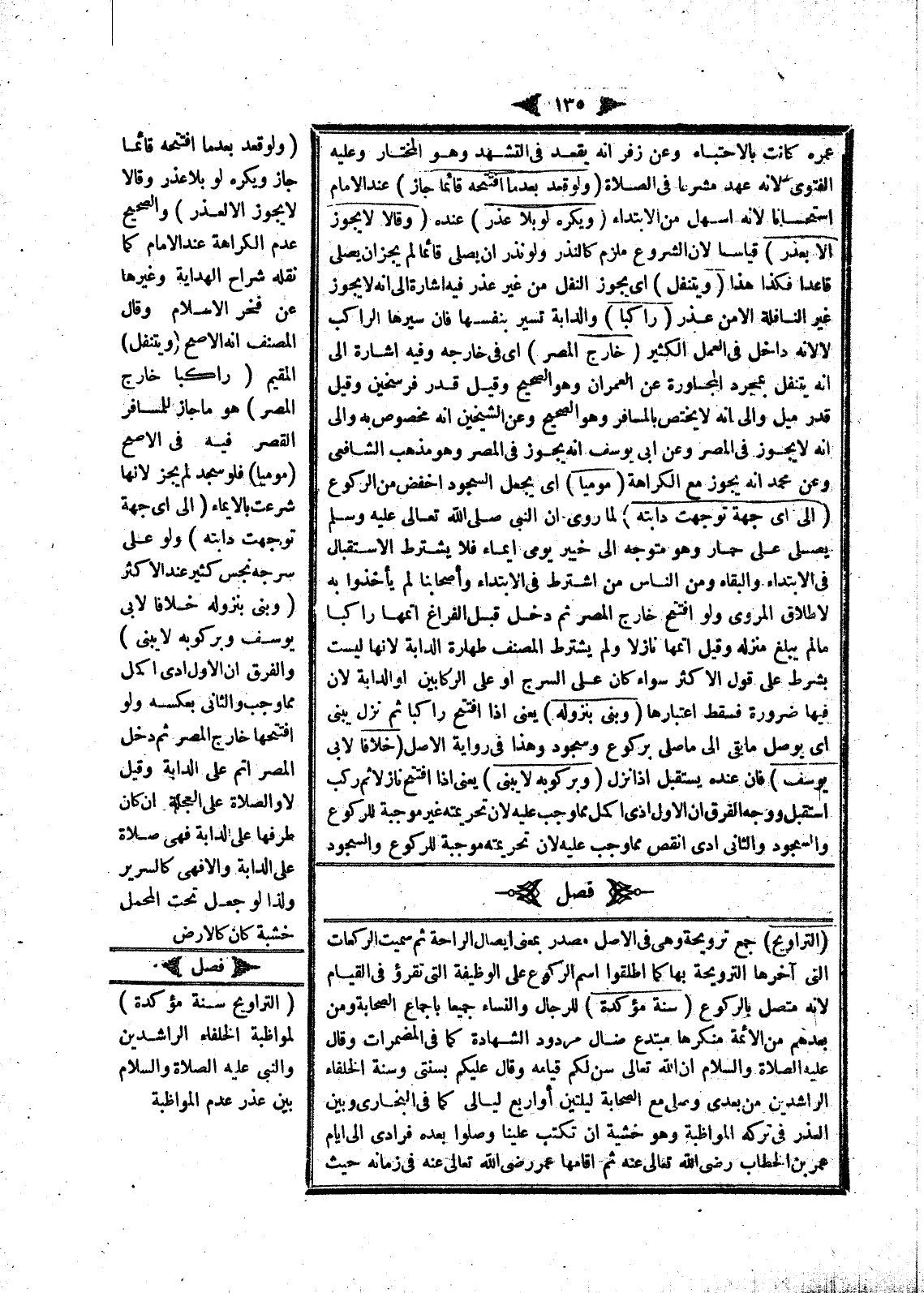 (التَّرَاوِيحُ) جَمْعُ تَرْوِيحَةٍ وَهِيَ فِي الْأَصْلِ مَصْدَرٌ بِمَعْنَى إيصَالِ الرَّاحَةِ ثُمَّ سُمِّيَتْ الرَّكَعَاتُ الَّتِي آخِرُهَا التَّرْوِيحَةَ بِهَا كَمَا أَطْلَقُوا اسْمَ الرُّكُوعِ عَلَى الْوَظِيفَةِ الَّتِي تُقْرَأُ فِي الْقِيَامِ لِأَنَّهُ مُتَّصِلٌ بِالرُّكُوعِ (سُنَّةٌ مُؤَكَّدَةٌ) لِلرِّجَالِ وَالنِّسَاءِ جَمِيعًا بِإِجْمَاعِ الصَّحَابَةِ وَمَنْ بَعْدَهُمْ مِنْ الْأَئِمَّةِ مُنْكِرُهَا مُبْتَدِعٌ ضَالٌّ مَرْدُودُ الشَّهَادَةِ كَمَا فِي الْمُضْمَرَاتِ.