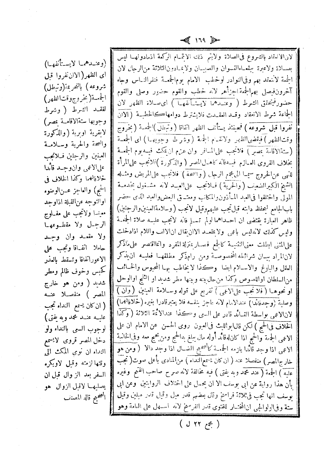 (وَمَنْ هُوَ خَارِجُ الْمِصْرِ) مُنْفَصِلًا عَنْهُ (إنْ كَانَ يَسْمَعُ النِّدَاءَ) مِنْ الْمُنَادِي بِأَعْلَى صَوْتٍ (تَجِبُ عَلَيْهِ) الْجُمُعَةُ (عِنْدَ مُحَمَّدٍ وَبِهِ يُفْتِي) فِيهِ مُخَالَفَةٌ لِأَنَّهُ صَرَّحَ صَاحِبُ الْفَتْحِ وَغَيْرُهُ بِأَنَّ هَذَا رِوَايَةٌ عَنْ أَبِي يُوسُفَ إلَّا أَنْ يُحْمَلَ عَلَى اخْتِلَافِ الرِّوَايَتَيْنِ وَعَنْ أَبِي يُوسُفَ أَنَّهَا تَجِبُ فِي ثَلَاثَةِ فَرَاسِخَ.