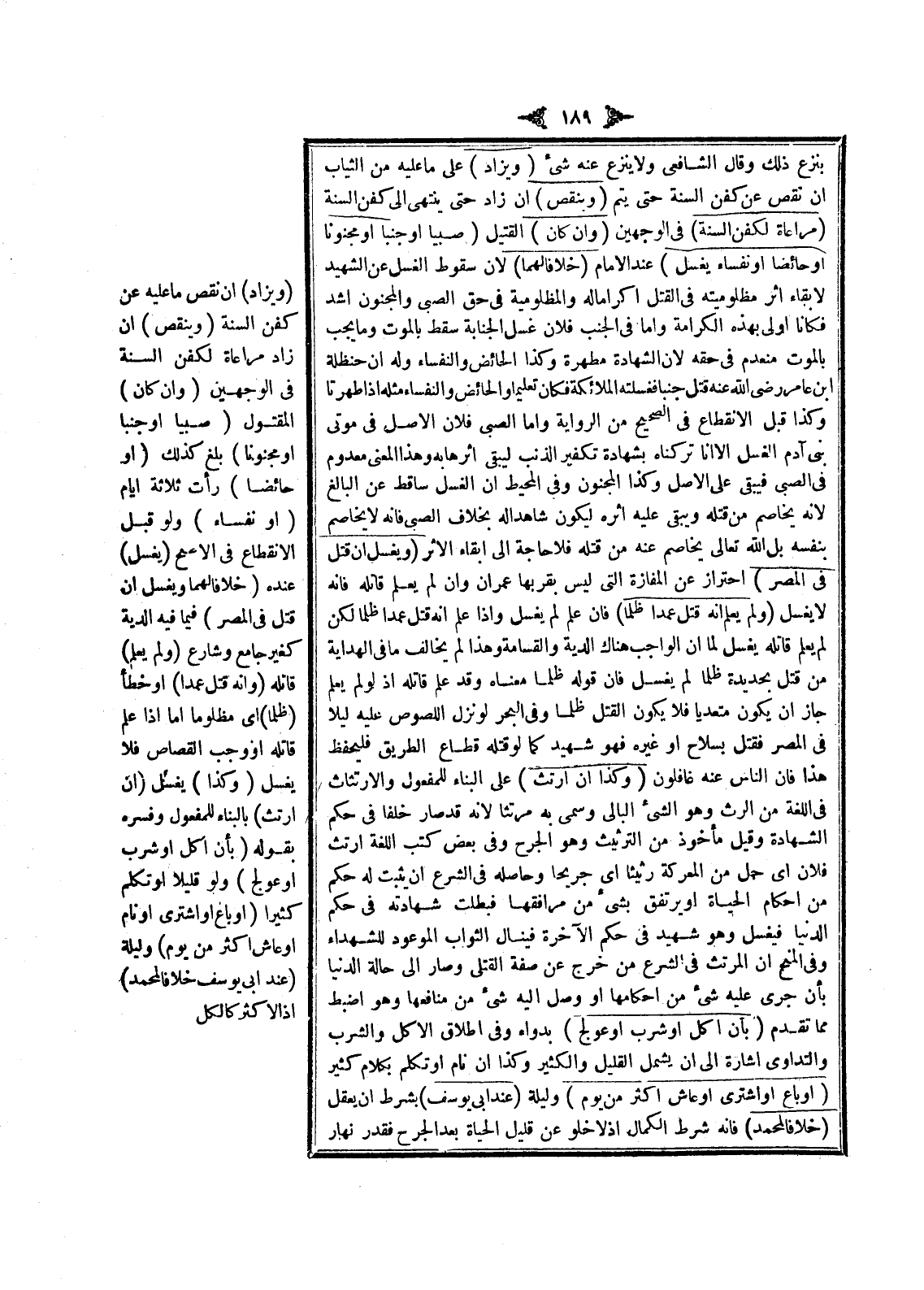 وَفِي الْمِنَحِ أَنَّ الْمُرْتَثَّ فِي الشَّرْعِ مَنْ خَرَجَ عَنْ صِفَةِ الْقَتْلَى وَصَارَ إلَى حَالَةِ الدُّنْيَا بِأَنْ جَرَى عَلَيْهِ شَيْءٌ مِنْ أَحْكَامِهَا أَوْ وَصَلَ إلَيْهِ شَيْءٌ مِنْ مَنَافِعِهَا وَهُوَ أَضْبَطُ مِمَّا تَقَدَّمَ (بِأَنْ أَكَلَ أَوْ شَرِبَ أَوْ عُولِجَ) بِدَوَاءٍ وَفِي إطْلَاقِ الْأَكْلِ وَالشُّرْبِ وَالتَّدَاوِي إشَارَةٌ إلَى أَنْ يَشْمَلَ الْقَلِيلَ وَالْكَثِيرَ وَكَذَا إنْ نَامَ أَوْ تَكَلَّمَ بِكَلَامٍ كَثِيرٍ (أَوْ بَاعَ أَوْ اشْتَرَى أَوْ عَاشَ أَكْثَرَ مِنْ يَوْمٍ) وَلَيْلَةٍ (عِنْدَ أَبِي يُوسُفَ) بِشَرْطِ أَنْ يَعْقِلَ (خِلَافًا لِمُحَمَّدٍ) فَإِنَّهُ شَرْطُ الْكَمَالِ إذْ لَا خُلُوَّ عَنْ قَلِيلِ الْحَيَاةِ بَعْدَ الْجَرْحِ فَقَدْرُ نَهَارٍ