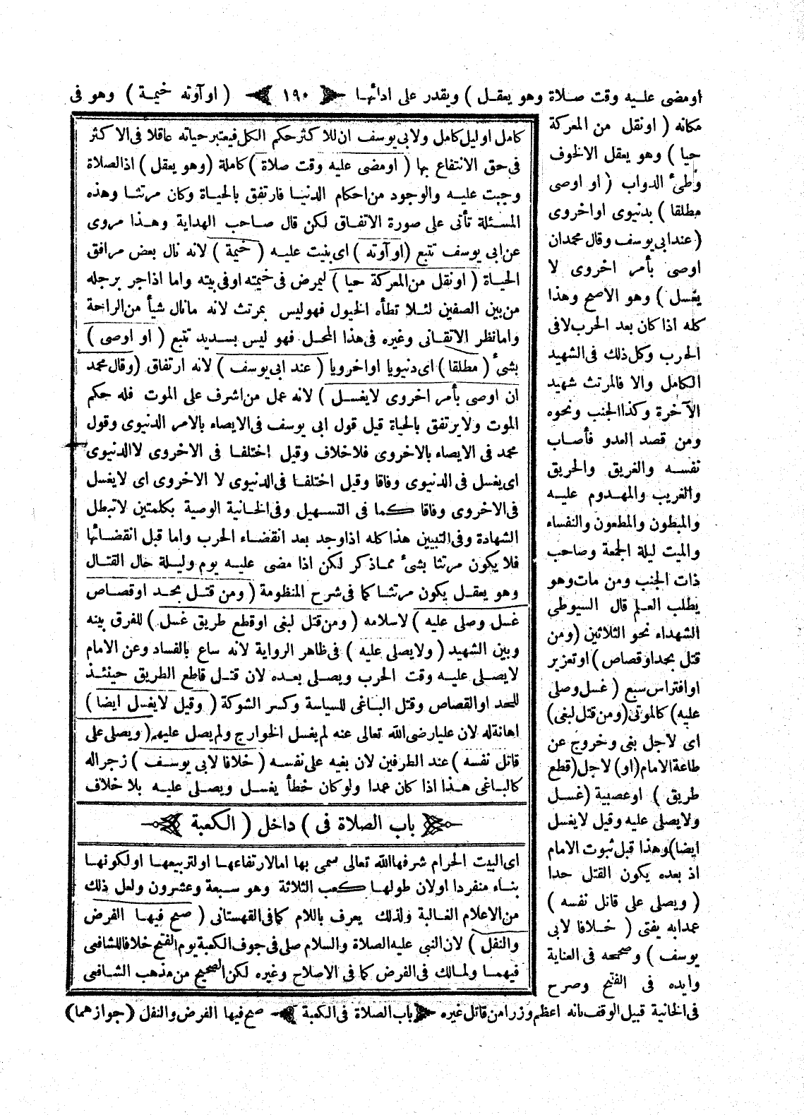 (بَابُ الصَّلَاةِ فِي دَاخِلِ الْكَعْبَةِ) أَيْ الْبَيْتِ الْحَرَامِ شَرَّفَهَا اللَّهُ تَعَالَى سُمِّيَ بِهَا إمَّا لِارْتِفَاعِهَا أَوْ لِتَرْبِيعِهَا أَوْ لِكَوْنِهَا بِنَاءً مُنْفَرِدًا أَوْ لِأَنَّ طُولَهَا كَعْبُ الثَّلَاثَةِ وَهُوَ سَبْعَةٌ وَعِشْرُونَ وَلَعَلَّ ذَلِكَ مِنْ الْأَعْلَامِ الْغَالِبَةِ وَلِذَلِكَ يُعَرَّفُ بِاللَّامِ كَمَا فِي الْقُهُسْتَانِيِّ (صَحَّ فِيهَا الْفَرْضُ وَالنَّفَلُ) لِأَنَّ «النَّبِيَّ - عَلَيْهِ الصَّلَاةُ وَالسَّلَامُ - صَلَّى فِي جَوْفِ الْكَعْبَةِ يَوْمَ الْفَتْحِ» خِلَافًا لِلشَّافِعِيِّ فِيهِمَا وَلِمَالِكٍ فِي الْفَرْضِ كَمَا فِي الْإِصْلَاحِ وَغَيْرِهِ لَكِنَّ الصَّحِيحَ مِنْ مَذْهَبِ الشَّافِعِيِّ