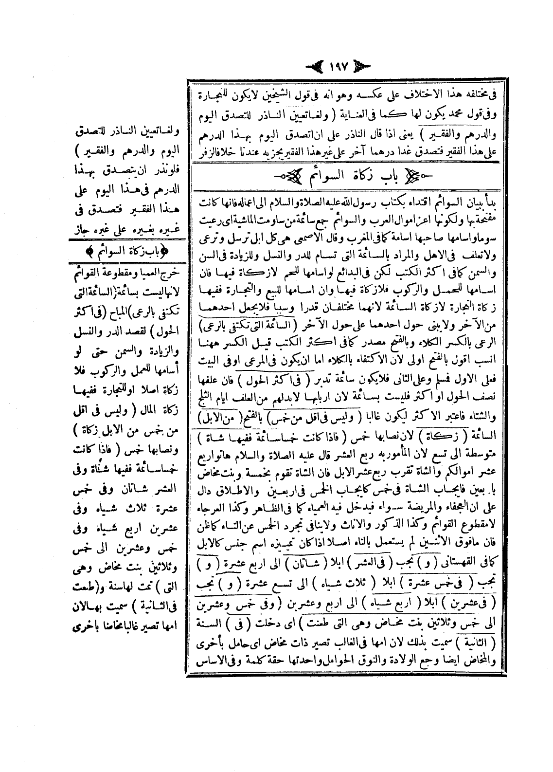 بَدَأَ بِبَيَانِ السَّوَائِمِ اقْتِدَاءً بِكِتَابِ رَسُولِ اللَّهِ - عَلَيْهِ الصَّلَاةُ وَالسَّلَامُ - إلَى أَعْمَالِهِ فَإِنَّهَا كَانَتْ مُفَتَّحَةً بِهَا وَلِكَوْنِهَا أَعَزَّ أَمْوَالِ الْعَرَبِ وَالسَّوَائِمُ جَمْعُ سَائِمَةٍ مِنْ سَاوَمَتْ الْمَاشِيَةِ أَيْ رَعَيَتْ سَوْمًا وَأَسَامَهَا صَاحِبُهَا إسَامَةً كَمَا فِي الْمُغْرِبِ.