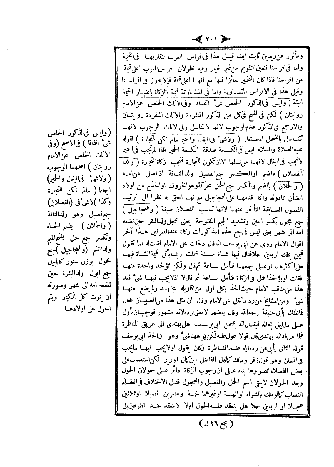 (وَلَا شَيْءَ فِي الْبِغَالِ وَالْحَمِيرِ مَا لَمْ تَكُنْ لِلتِّجَارَةِ) لِقَوْلِهِ - عَلَيْهِ الصَّلَاةُ وَالسَّلَامُ - «لَيْسَ فِي الْكُسْعَةِ صَدَقَةٌ» الْكُسْعَةُ الْحَمِيرُ فَإِذَا لَمْ تَجِبْ فِي الْحَمِيرِ لَا تَجِبُ فِي الْبِغَالِ؛ لِأَنَّهَا مِنْ نَسْلِهَا إلَّا أَنْ تَكُونَ لِلتِّجَارَةِ فَتَجِبُ زَكَاةُ التِّجَارَةِ (وَكَذَا الْفُصْلَانُ) بِالضَّمِّ أَوْ الْكَسْرِ جَمْعُ الْفَصِيلِ وَلَدِ النَّاقَةِ إذَا فُصِلَ عَنْ أُمِّهِ (وَالْحُمْلَانُ) بِالضَّمِّ وَالْكَسْرِ جَمْعُ الْحَمَلُ مُحَرَّكَةٌ وَهُوَ الْخَرُوفُ أَوْ الْجَذَعُ مِنْ أَوْلَادِ الضَّأْنِ مِمَّا دُونَهُ وَإِنَّمَا قَدَّمَهَا عَلَى الْعَجَاجِيلِ مَعَ أَنَّهَا أَحَقُّ بِهِ نَظَرًا إلَى تَرْتِيبِ الْفُصُولِ السَّابِقَةِ التَّأَخُّرِ عَنْهَا؛ لِأَنَّهَا تُنَاسِبُ الْفُصْلَانُ صِيغَةً (وَالْعَجَاجِيلُ) جَمْعُ عِجَّوْلٍ بِكَسْرِ الْعَيْنِ وَتَشْدِيدِ الْجِيمِ الْمَفْتُوحَةِ بِمَعْنَى عِجْلٍ وَلَدِ الْبَقَرِ حِينَ تَضَعُهُ أُمُّهُ إلَى شَهْرٍ يَعْنِي لَيْسَ فِي جَمْعِ هَذِهِ الْمَذْكُورَاتِ زَكَاةٌ عِنْدَ الطَّرَفَيْنِ هَذَا آخِرِ أَقْوَالِ الْإِمَامِ رُوِيَ عَنْ أَبِي يُوسُفَ أَنَّهُ قَالَ دَخَلْت عَلَى الْإِمَامِ فَقُلْت لَهُ: أَمَا تَقُولُ فِيمَنْ يَمْلِكُ أَرْبَعِينَ حَمَلًا؟ فَقَالَ: فِيهَا شَاةٌ مُسِنَّةٌ فَقُلْت رُبَّمَا يَأْتِي قِيمَةُ الشَّاةِ فِيهَا عَلَى أَكْثَرِهَا أَوْ عَلَى جَمِيعِهَا؟ فَتَأَمَّلَ سَاعَةً. ثُمَّ قَالَ: وَلَكِنْ تُؤْخَذُ وَاحِدَةٌ مِنْهَا فَقُلْت أَوْ يُؤْخَذُ الْحَمَلُ فِي الزَّكَاةِ؟ فَتَأَمَّلَ سَاعَةً ثُمَّ قَالَ لَا إذْ لَا يَجِبُ فِيهَا شَيْءٌ فَعَدَّ هَذَا مِنْ مَنَاقِبِ الْإِمَامِ حَيْثُ أَخَذَ بِكُلِّ قَوْلٍ مِنْ أَقَاوِيلِهِ مُجْتَهِدٌ وَلَمْ يَضَعْ مِنْهَا شَيْءٌ وَمِنْ الْمَشَايِخِ مَنْ رَدَّ مَا نُقِلَ عَنْ الْإِمَامِ وَقَالَ إنَّ مِثْلَ هَذَا مِنْ الصِّبْيَانِ مُحَالٌ فَمَا ظَنُّكَ بِأَبِي حَنِيفَةَ - رَحِمَهُ اللَّهُ - وَقَالَ: بَعْضُهُمْ لَا مَعْنَى لِرَدِّهِ؛ لِأَنَّهُ مَشْهُورٌ فَوَجَبَ أَنْ يُؤَوَّلَ عَلَى مَا يَلِيقُ بِحَالِهِ فَيُقَالُ: إنَّهُ يَمْتَحِنُ أَبَا يُوسُفَ هَلْ يَهْتَدِي إلَى طَرِيقِ الْمُنَاظَرَةِ فَلَمَّا عَرَفَهُ أَنَّهُ يَهْتَدِي قَالَ قَوْلًا عُوِّلَ عَلَيْهِ، لَكِنْ بَقِيَ هَاهُنَا شَيْءٌ وَهُوَ أَنَّ أَخْذَ أَبِي يُوسُفَ قَوْلَهُ الثَّانِيَ يَأْبَى عَنْ رَدِّهِ إيَّاهُ عِنْدَ الْمُنَاظَرَةِ وَكَانَ يَقُولُ أَوَّلًا: يَجِبُ فِيهَا مَا يَجِبُ فِي الْمَسَانِّ وَهُوَ قَوْلُ زُفَرَ وَمَالِكٍ كَمَا قَالَ الْفَاضِلُ ابْنُ كَمَالٍ الْوَزِيرُ: لَكِنْ اسْتَصْعَبَ عَلَى بَعْضِ الْفُضَلَاءِ تَصْوِيرُهَا بِنَاءً عَلَى أَنَّ وُجُوبَ الزَّكَاةِ دَائِرٌ عَلَى حَوَلَانِ الْحَوْلِ وَبَعْدَ الْحَوَلَانِ لَا يَبْقَى اسْمُ الْحَمَلِ وَالْفَصِيلِ وَالْعُجُولِ فَقِيلَ: الِاخْتِلَافُ فِي انْعِقَادِ النِّصَابِ كَمَا لَوْ مَلَكَ بِالشِّرَاءِ أَوْ الْهِبَةِ أَوْ غَيْرِهِمَا خَمْسَةً وَعِشْرِينَ فَصِيلًا أَوْ ثَلَاثِينَ عِجْلًا أَوْ أَرْبَعِينَ حَمَلًا هَلْ يَنْعَقِدُ عَلَيْهِ الْحَوْلُ أَمْ لَا يَنْعَقِدُ عِنْدَ الطَّرَفَيْنِ بَلْ