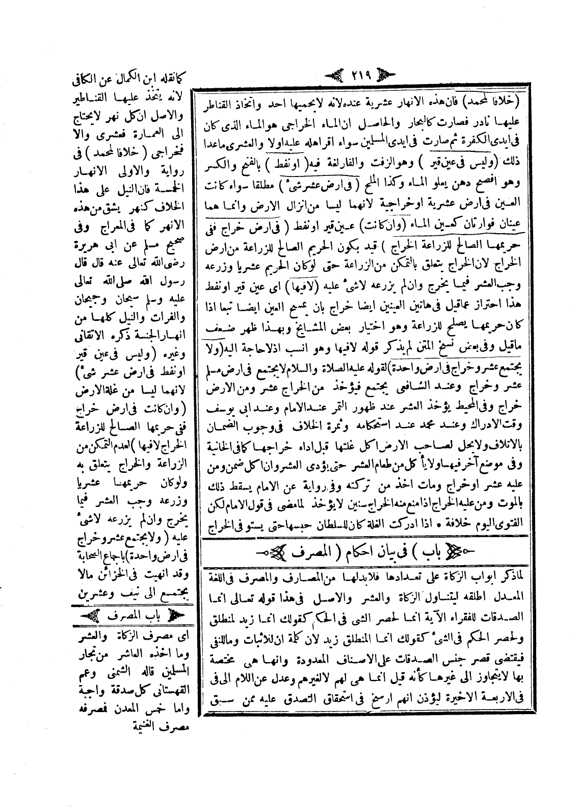 (خِلَافًا لِمُحَمَّدٍ) فَإِنَّ هَذِهِ الْأَنْهَارَ عُشْرِيَّةٌ عِنْدَهُ؛ لِأَنَّهُ لَا يَحْمِيهَا أَحَدٌ وَاِتِّخَاذُ الْقَنَاطِرِ عَلَيْهَا نَادِرٌ فَصَارَتْ كَالْبِحَارِ وَالْحَاصِلُ أَنَّ الْمَاءَ الْخَرَاجِيَّ هُوَ الْمَاءُ الَّذِي كَانَ فِي أَيْدِي الْكَفَرَةِ ثُمَّ صَارَتْ فِي أَيْدِي الْمُسْلِمِينَ سَوَاءٌ أُقِرَّ أَهْلُهُ عَلَيْهِ أَوْ لَا وَالْعُشْرِيُّ مَا عَدَا ذَلِكَ.