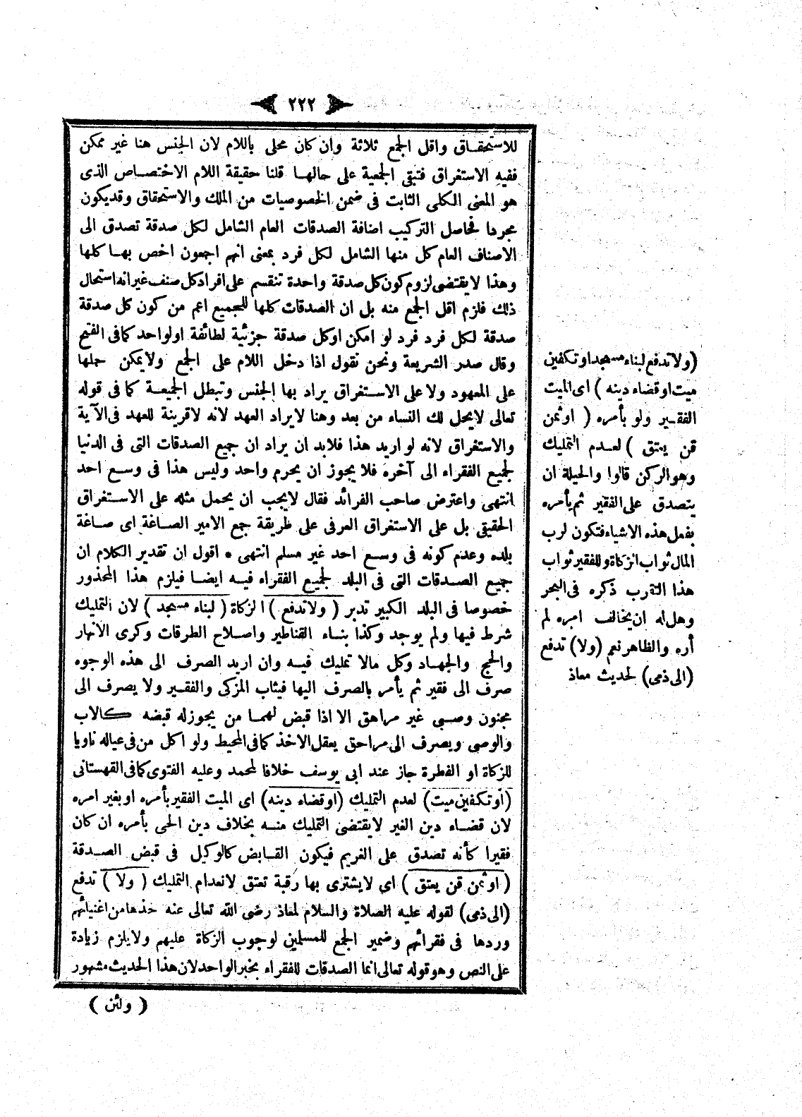 لِلِاسْتِحْقَاقِ وَأَقَلُّ الْجَمْعِ ثَلَاثَةٌ وَإِنْ كَانَ مُحَلًّى بِاللَّامِ؛ لِأَنَّ الْجِنْسَ هُنَا غَيْرُ مُمْكِنٍ فَفِيهِ الِاسْتِغْرَاقُ فَتَبْقَى الْجَمْعِيَّةُ عَلَى حَالِهَا قُلْنَا: حَقِيقَةُ اللَّامِ الِاخْتِصَاصُ الَّذِي هُوَ الْمَعْنَى الْكُلِّيُّ الثَّابِتُ فِي ضِمْنِ الْخُصُوصِيَّاتِ مِنْ الْمِلْكِ وَالِاسْتِحْقَاقِ وَقَدْ يَكُونُ مُجَرَّدًا فَحَاصِلُ التَّرْكِيبِ إضَافَةُ الصَّدَقَاتِ الْعَامِّ الشَّامِلِ لِكُلِّ صَدَقَةٍ تُصْدَقُ إلَى الْأَصْنَافِ الْعَامِّ كُلٍّ مِنْهَا الشَّامِلِ لِكُلِّ فَرْدٍ بِمَعْنَى أَنَّهُمْ أَجْمَعُونَ أَخَصُّ بِهَا كُلِّهَا وَهَذَا لَا يَقْتَضِي لُزُومَ كَوْنِ كُلِّ صَدَقَةٍ وَاحِدَةٍ تَنْقَسِمُ عَلَى أَفْرَادِ كُلِّ صِنْفٍ غَيْرَ أَنَّهُ اسْتَحَالَ ذَلِكَ فَلَزِمَ أَقَلُّ الْجَمْعِ مِنْهُ بَلْ إنَّ الصَّدَقَاتِ كُلَّهَا لِلْجَمِيعِ أَعَمُّ مِنْ كَوْنِ كُلِّ صَدَقَةٍ صَدَقَةٌ لِكُلِّ فَرْدٍ فَرْدٌ لَوْ أَمْكَنَ أَوْ كُلُّ صَدَقَةٍ جُزْئِيَّةٍ لِطَائِفَةٍ أَوْ لِوَاحِدٍ كَمَا فِي الْفَتْحِ قَالَ صَدْرُ الشَّرِيعَةِ: وَنَحْنُ نَقُولُ إذَا دَخَلَ اللَّامُ عَلَى الْجَمْعِ وَلَا يُمْكِنُ حَمْلُهَا عَلَى الْمَعْهُودِ وَلَا عَلَى الِاسْتِغْرَاقِ يُرَادُ بِهَا الْجِنْسُ وَتَبْطُلُ الْجَمْعِيَّةُ كَمَا فِي قَوْله تَعَالَى {لا يَحِلُّ لَكَ النِّسَاءُ مِنْ بَعْدُ} [الأحزاب: 52] وَهُنَا لَا يُرَادُ الْعَهْدُ؛ لِأَنَّهُ لَا قَرِينَةَ لِلْعَهْدِ فِي الْآيَةِ وَالِاسْتِغْرَاقِ؛ لِأَنَّهُ لَوْ أُرِيدَ هَذَا فَلَا بُدَّ أَنْ يُرَادَ أَنَّ جَمِيعَ الصَّدَقَاتِ الَّتِي فِي الدُّنْيَا لِجَمِيعِ الْفُقَرَاءِ إلَى آخِرِهِ فَلَا يَجُوزُ أَنْ يُحْرَمَ وَاحِدٌ وَلَيْسَ هَذَا فِي وُسْعِ أَحَدٍ انْتَهَى. وَاعْتَرَضَ صَاحِبُ الْفَرَائِدِ فَقَالَ: لَا يَجِبُ أَنْ يُحْمَلَ مِثْلُهُ عَلَى الِاسْتِغْرَاقِ الْحَقِيقِيِّ بَلْ عَلَى الِاسْتِغْرَاقِ الْعُرْفِيِّ عَلَى طَرِيقَةِ جَمَعَ الْأَمِيرُ الصَّاغَةَ أَيْ صَاغَةَ بَلَدِهِ وَعَدَمُ كَوْنِهِ فِي وُسْعِ أَحَدٍ غَيْرَ مُسَلَّمٍ انْتَهَى. أَقُولُ إنَّ تَقْدِيرَ الْكَلَامِ أَنَّ جَمِيعَ الصَّدَقَاتِ الَّتِي فِي الْبَلَدِ لِجَمِيعِ الْفُقَرَاءِ فِيهَا أَيْضًا فَيَلْزَمُ هَذَا الْمَحْذُورُ خُصُوصًا فِي الْبَلَدِ الْكَبِيرِ. تَدَبَّرْ.