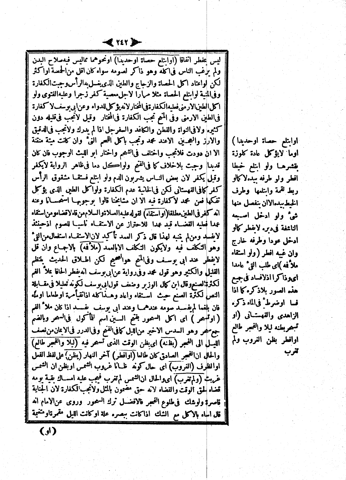 وَفِي الْمِنَحِ تَجِبُ الْكَفَّارَةُ فِي الْمُخْتَارِ وَقِيلَ لَا تَجِبُ فِي قَلِيلِهِ دُونَ كَثِيرِهِ وَلَا فِي النَّوَاةِ وَالْقُطْنِ وَالْكَاغَدِ وَالسَّفَرْجَلِ إذَا لَمْ يُدْرِكْ وَلَا تَجِبُ فِي الدَّقِيقِ وَالْأُرْزِ وَالْعَجِينِ إلَّا عِنْدَ مُحَمَّدٍ وَتَجِبُ بِأَكْلِ اللَّحْمِ النِّيءِ وَإِنْ كَانَتْ مَيْتَةً مُنْتِنَةً إلَّا إنْ دَوَّدَتْ فَلَا تَجِبُ وَاخْتُلِفَ فِي الشَّحْمِ وَاخْتَارَ أَبُو اللَّيْثِ الْوُجُوبَ فَإِنْ كَانَ قَدِيدًا وَجَبَتْ بِلَا خِلَافٍ كَمَا فِي الْفَتْحِ.