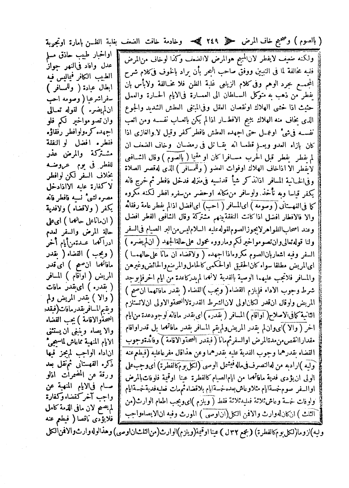 وَلَكِنَّهُ ضَعِيفٌ لَا يُفْطِرُ؛ لِأَنَّ الْمُبِيحَ هُوَ الْمَرَضُ لَا الضَّعْفُ وَكَذَا لَوْ خَافَ مِنْ الْمَرَضِ فَفِيهِ مُخَالَفَةٌ لِمَا فِي التَّبْيِينِ وَوَفَّقَ صَاحِبُ الْبَحْرِ بِأَنْ يُرَادَ بِالْخَوْفِ فِي كَلَامِ شَرْحِ الْمَجْمَعِ مُجَرَّدُ الْوَهْمِ.