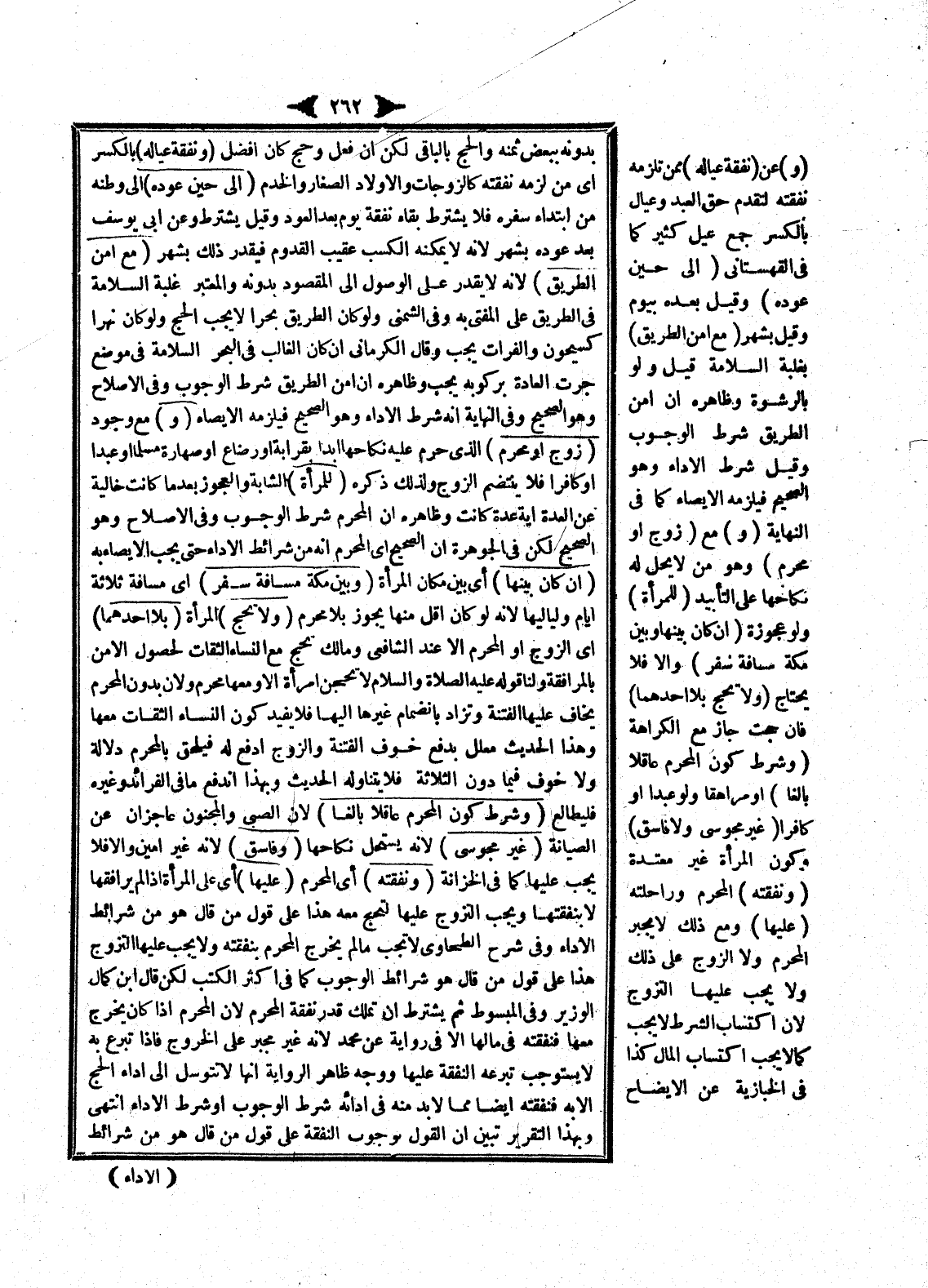 وَفِي الْإِصْلَاحِ وَهُوَ الصَّحِيحُ لَكِنْ فِي الْجَوْهَرَةِ أَنَّ الصَّحِيحَ أَيْ الْمَحْرَمَ أَنَّهُ مِنْ شَرَائِطِ الْأَدَاءِ حَتَّى يَجِبَ الْإِيصَاءُ بِهِ (إنْ كَانَ بَيْنَهَا) أَيْ بَيْنَ مَكَانِ الْمَرْأَةِ.