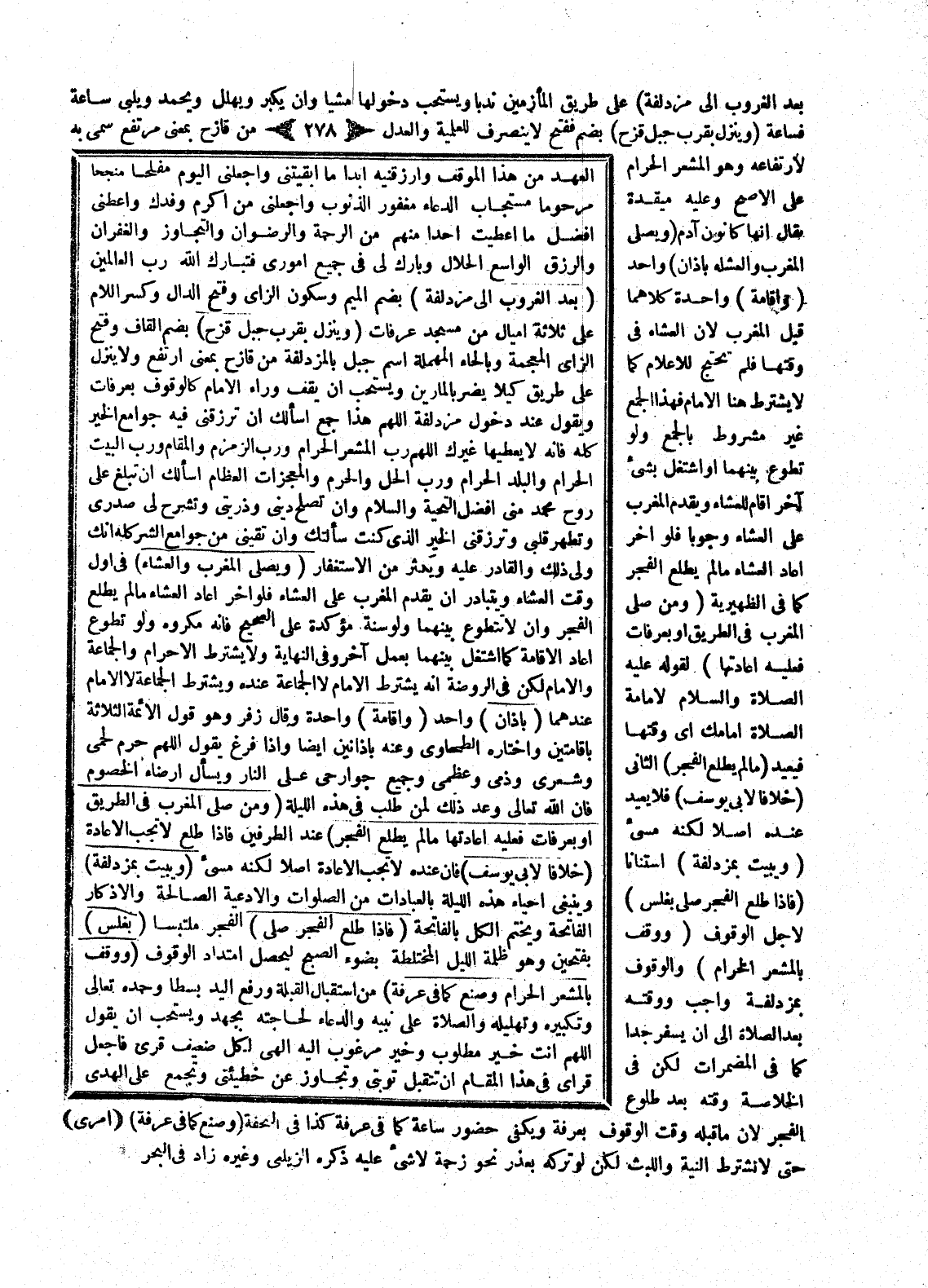 الْعَهْدِ مِنْ هَذَا الْمَوْقِفِ وَارْزُقْنِيهِ أَبَدًا مَا أَبْقَيْتَنِي وَاجْعَلْنِي الْيَوْمَ مُفْلِحًا مُنَجَّحًا مَرْحُومًا مُسْتَجَابَ الدُّعَاءِ مَغْفُورَ الذُّنُوبِ وَاجْعَلْنِي مِنْ أَكْرَمِ وَفْدِكَ وَاعْطِنِي أَفْضَلَ مَا أَعْطَيْتَ أَحَدًا مِنْهُمْ مِنْ الرَّحْمَةِ وَالرِّضْوَانِ وَالتَّجَاوُزِ وَالْغُفْرَانِ وَالرِّزْقِ الْوَاسِعِ الْحَلَالِ وَبَارِكْ لِي فِي جَمِيعِ أُمُورِي فَتَبَارَكَ اللَّهُ رَبُّ الْعَالَمِينَ (بَعْدَ الْغُرُوبِ إلَى مُزْدَلِفَةَ) بِضَمِّ الْمِيمِ وَسُكُونِ الزَّايِ وَفَتْحِ الدَّالِ وَكَسْرِ اللَّامِ عَلَى ثَلَاثَةِ أَمْيَالٍ مِنْ مَسْجِدِ عَرَفَاتٍ (وَيَنْزِلُ بِقُرْبِ جَبَلِ قُزَحَ) بِضَمِّ الْقَافِ وَفَتْحِ الزَّايِ الْمُعْجَمَةِ وَبِالْحَاءِ الْمُهْمَلَةِ اسْمُ جَبَلٍ بِالْمُزْدَلِفَةِ مِنْ قَازَحَ بِمَعْنَى ارْتَفَعَ وَلَا يَنْزِلْ عَلَى طَرِيقٍ كَيْ لَا يَضُرَّ بِالْمَارِّينَ، وَيُسْتَحَبُّ أَنْ يَقِفَ وَرَاءَ الْإِمَامِ كَالْوُقُوفِ بِعَرَفَاتٍ وَيَقُولَ عِنْدَ دُخُولِ مُزْدَلِفَةَ: اللَّهُمَّ هَذَا جَمْعٌ أَسْأَلُك أَنْ تَرْزُقَنِي فِيهِ جَوَامِعَ الْخَيْرِ كُلِّهِ فَإِنَّهُ لَا يُعْطِيهَا غَيْرُك اللَّهُمَّ رَبَّ الْمَشْعَرِ الْحَرَامِ وَرَبِّ الزَّمْزَمِ وَالْمَقَامِ وَرَبِّ الْبَيْتِ الْحَرَامِ وَالْبَلَدِ الْحَرَامِ وَرَبِّ الْحِلِّ وَالْحَرَمِ وَالْمُعْجِزَاتِ الْعِظَامِ أَسْأَلُك أَنْ تُبَلِّغَ عَلَى رُوحِ مُحَمَّدٍ مِنِّي أَفْضَلَ التَّحِيَّةِ وَالسَّلَامِ وَأَنْ تُصْلِحَ دِينِي وَذُرِّيَّتِي وَتَشْرَحَ لِي صَدْرِي وَتُطَهِّرَ قَلْبِي وَتَرْزُقَنِي الْخَيْرَ الَّذِي كُنْتُ سَأَلْتُكَ وَأَنْ تَقِيَنِي مِنْ جَوَامِعِ الشَّرِّ كُلِّهِ إنَّك وَلِيُّ ذَلِكَ وَالْقَادِرُ عَلَيْهِ وَيُكْثِرُ مِنْ الِاسْتِغْفَارِ.