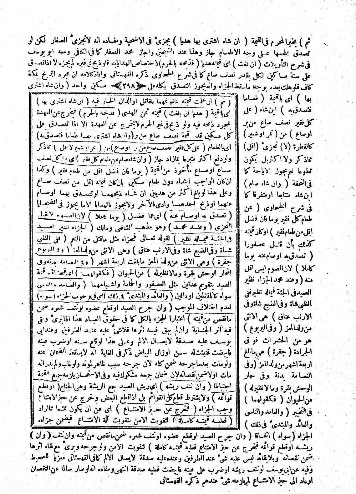 (وَإِنْ شَاءَ صَامَ عَنْ طَعَامِ كُلِّ فَقِيرٍ) أَيْ كُلِّ نِصْفِ صَاعٍ أَوْ صَاعٍ مَأْخُوذٍ مِنْ الْقِيمَةِ (يَوْمًا فَإِنْ فَضَلَ أَقَلُّ مِنْ طَعَامِ فَقِيرٍ) وَكَذَا إنْ كَانَ الْوَاجِبُ ابْتِدَاءً دُونَ طَعَامِ مِسْكِينٍ بِأَنْ كَانَ قِيمَتُهُ أَقَلَّ مِنْ نِصْفِ صَاعٍ وَعَلَى هَذَا لَوْ بَلَغَ أَكْثَرَ مِنْ هَدْيَيْنِ إنْ شَاءَ ذَبَحَهُمَا أَوْ تَصَدَّقَ بِهِمَا أَوْ صَامَ عَنْهُمَا أَوْ ذَبَحَ أَحَدَهُمَا وَأَدَّى بِالْآخَرِ وَلَا يَجُوزُ بِالْهَدَايَا إلَّا مَا يَجُوزُ فِي الضَّحَايَا (تَصَدَّقَ بِهِ أَوْ صَامَ عَنْهُ) أَيْ عَمَّا فَضَلَ (يَوْمًا كَامِلًا) ؛ لِأَنَّ الصَّوْمَ لَا يَقْبَلُ التَّجَزُّؤَ (وَعِنْدَ مُحَمَّدٍ) وَهُوَ مَذْهَبُ الشَّافِعِيِّ وَمَالِكٍ (الْجَزَاءُ نَظِيرُ الصَّيْدِ فِي الْجُثَّةِ فِيمَا لَهُ نَظِيرٌ) لِقَوْلِهِ تَعَالَى {فَجَزَاءٌ مِثْلُ مَا قَتَلَ مِنَ النَّعَمِ} [المائدة: 95] (فَفِي الظَّبْيِ شَاةٌ وَفِي الضَّبُعِ شَاةٌ وَفِي الْأَرْنَبِ عَنَاقٌ) وَهِيَ الْأُنْثَى مِنْ وَلَدِ الْمَعْزِ (وَفِي الْيَرْبُوعِ جَفْرَةٌ) وَهِيَ الْأُنْثَى مِنْ وَلَدِ الْمَعْزِ مَا بَلَغَتْ أَرْبَعَةَ أَشْهُرٍ (وَفِي النَّعَامَةِ بَدَنَةٌ وَفِي حِمَارِ الْوَحْشِ بَقَرَةٌ وَمَا لَا نَظِيرَ لَهُ) مِنْ الْحَيَوَانِ (فَكَقَوْلِهِمَا) أَيْ فَجَزَاؤُهُ قِيمَةُ الصَّيْدِ بِتَقْوِيمِ عَدْلَيْنِ مِثْلَ الْعُصْفُورِ وَالْحَمَامَةِ وَأَشْبَاهِهِمَا (وَالْعَامِدُ وَالنَّاسِي) سَوَاءٌ كَانَا قَاتِلَيْنِ أَوْ دَالَّيْنِ (وَالْعَائِدُ وَالْمُبْتَدِئُ فِي ذَلِكَ) أَيْ فِي وُجُوبِ الْجَزَاءِ (سَوَاءٌ) لِعَدَمِ اخْتِلَافِ الْمُوجِبِ.