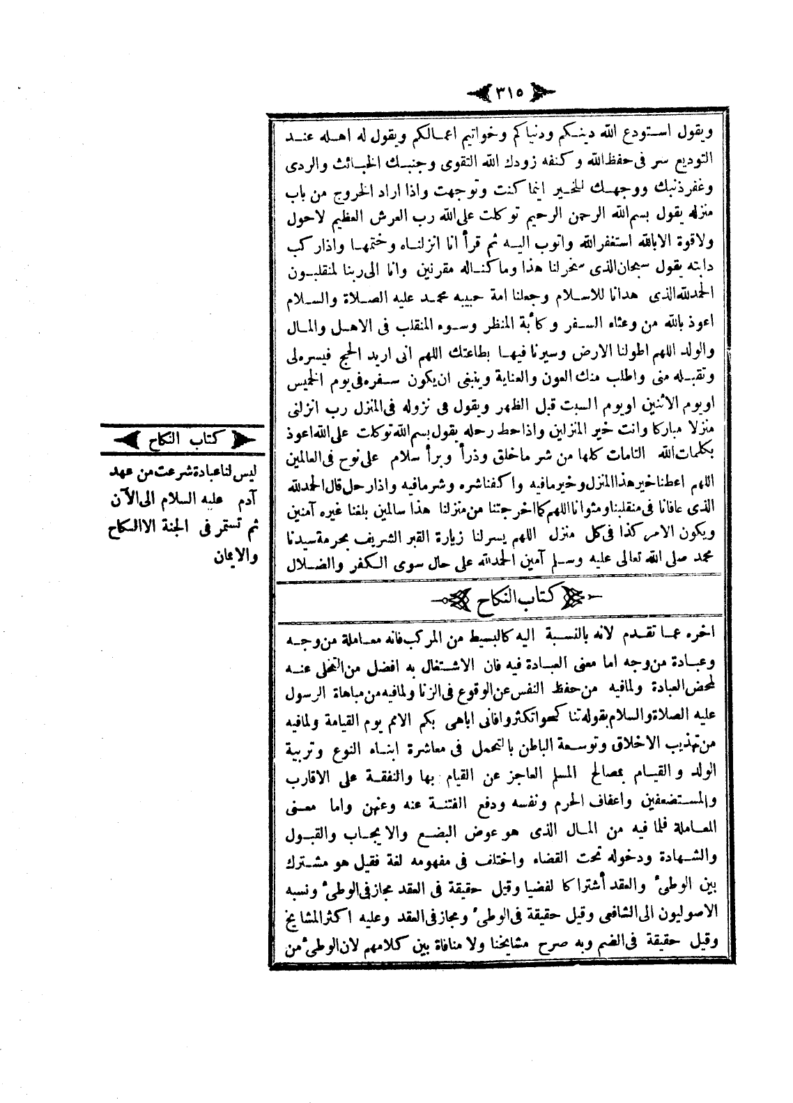 ِ أَخَّرَهُ عَمَّا تَقَدَّمَ؛ لِأَنَّهُ بِالنِّسْبَةِ إلَيْهِ كَالْبَسِيطِ مِنْ الْمُرَكَّبِ فَإِنَّهُ مُعَامَلَةٌ مِنْ وَجْهٍ وَعِبَادَةٌ مِنْ وَجْهٍ أَمَّا مَعْنَى الْعِبَادَةِ فِيهِ فَإِنَّ الِاشْتِغَالَ بِهِ أَفْضَلُ مِنْ التَّخَلِّي عَنْهُ لِمَحْضِ الْعِبَادَةِ، وَلِمَا فِيهِ مِنْ حِفْظِ النَّفْسِ عَنْ الْوُقُوعِ فِي الزِّنَا، وَلِمَا فِيهِ مِنْ مُبَاهَاةِ الرَّسُولِ - عَلَيْهِ الصَّلَاةُ وَالسَّلَامُ - بِقَوْلِهِ «تَنَاكَحُوا تَكْثُرُوا فَإِنِّي أُبَاهِي بِكُمْ الْأُمَمَ يَوْمَ الْقِيَامَةِ» ، وَلِمَا فِيهِ مِنْ تَهْذِيبِ الْأَخْلَاقِ وَتَوْسِعَةِ الْبَاطِنِ بِالتَّحَمُّلِ فِي مُعَاشَرَةِ أَبْنَاءِ النَّوْعِ وَتَرْبِيَةِ الْوَلَدِ وَالْقِيَامِ بِمَصَالِح الْمُسْلِمِ الْعَاجِزِ عَنْ الْقِيَامِ بِهَا وَالنَّفَقَةِ عَلَى الْأَقَارِبِ وَالْمُسْتَضْعَفِينَ وَإِعْفَافِ الْحُرَمِ وَنَفْسِهِ وَدَفْعِ الْفِتْنَةِ عَنْهُ وَعَنْهُنَّ وَأَمَّا مَعْنَى الْمُعَامَلَةِ فَلِمَا فِيهِ مِنْ الْمَالِ الَّذِي هُوَ عِوَضُ الْبُضْعِ وَالْإِيجَابُ وَالْقَبُولُ وَالشَّهَادَةُ وَدُخُولُهُ تَحْتَ الْقَضَاءِ وَاخْتُلِفَ فِي مَفْهُومِهِ لُغَةً فَقِيلَ هُوَ مُشْتَرَكٌ بَيْنَ الْوَطْءِ وَالْعَقْدِ اشْتِرَاكًا لَفْظِيًّا وَقِيلَ حَقِيقَةٌ فِي الْعَقْدِ مَجَازٌ فِي الْوَطْءِ وَنَسَبَهُ الْأُصُولِيُّونَ إلَى الشَّافِعِيِّ وَقِيلَ حَقِيقَةٌ فِي الْوَطْءِ وَمَجَازٌ فِي الْعَقْدِ وَعَلَيْهِ أَكْثَرُ الْمَشَايِخِ وَقِيلَ حَقِيقَةٌ فِي الضَّمِّ وَبِهِ صَرَّحَ مَشَايِخُنَا وَلَا مُنَافَاةَ بَيْنَ كَلَامِهِمْ؛ لِأَنَّ الْوَطْءَ مِنْ