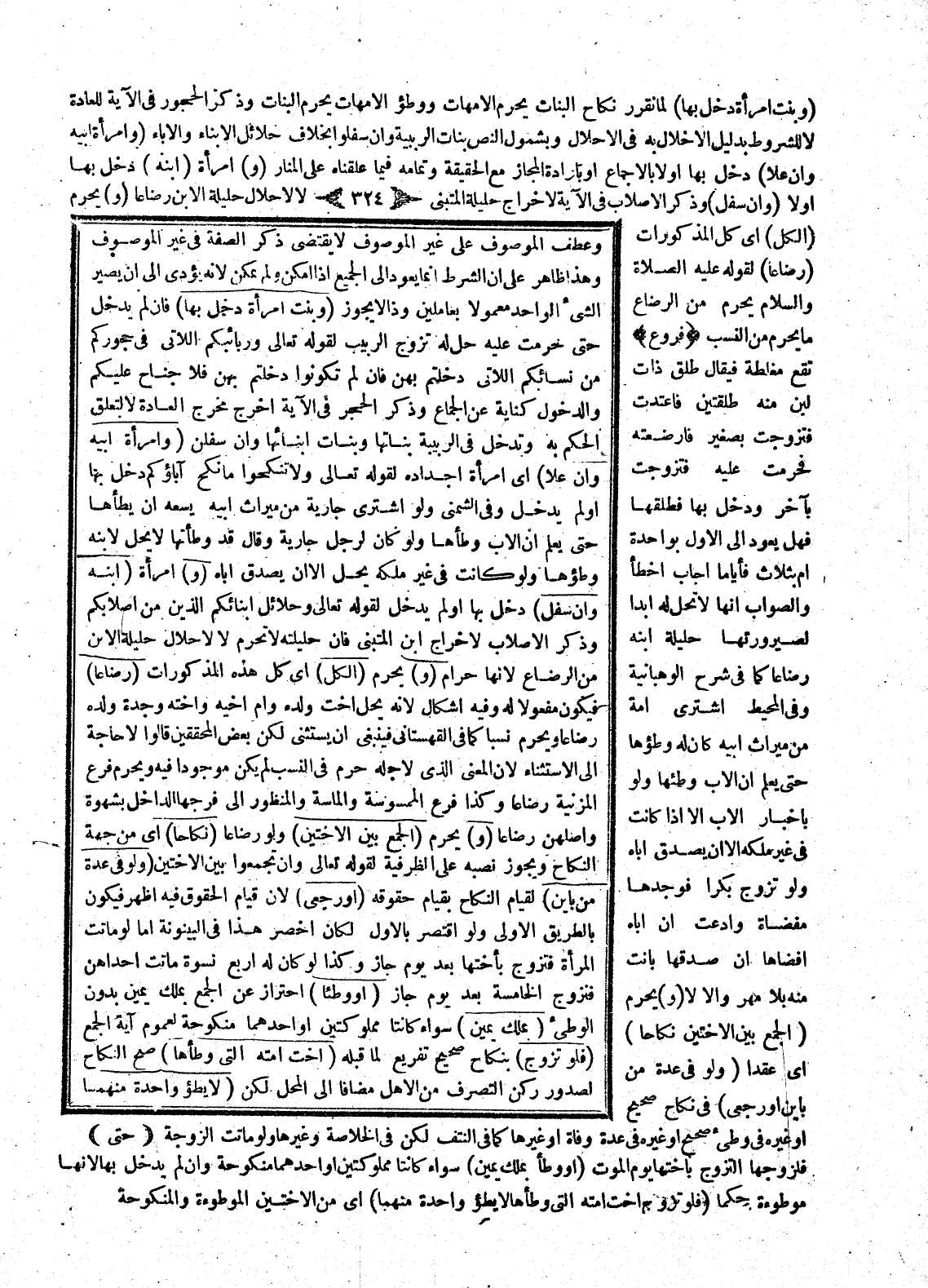 (وَ) يَحْرُمُ (الْكُلُّ) أَيْ كُلُّ هَذِهِ الْمَذْكُورَاتِ (رَضَاعًا) فَيَكُونُ مَفْعُولًا لَهُ وَفِيهِ إشْكَالٌ لِأَنَّهُ يَحِلُّ أُخْتُ وَلَدِهِ وَأُمُّ أَخِيهِ وَأُخْتِهِ وَجَدَّةُ وَلَدِهِ رَضَاعًا وَيَحْرُمُ نَسَبًا كَمَا فِي الْقُهُسْتَانِيِّ فَيَنْبَغِي أَنْ يُسْتَثْنَى لَكِنَّ بَعْضَ الْمُحَقِّقِينَ قَالُوا لَا حَاجَةَ إلَى الِاسْتِثْنَاءِ؛ لِأَنَّ الْمَعْنَى الَّذِي لِأَجْلِهِ حُرِّمَ فِي النَّسَبِ لَمْ يَكُنْ مَوْجُودًا فِيهِ وَيَحْرُمُ فَرْعُ الْمُزَنِيَّةِ رَضَاعًا، وَكَذَا فَرْعُ الْمَمْسُوسَةِ وَالْمَسَّةِ وَالْمَنْظُورِ إلَى فَرْجِهَا الدَّاخِلِ بِشَهْوَةٍ وَأَصْلُهُنَّ رَضَاعًا.