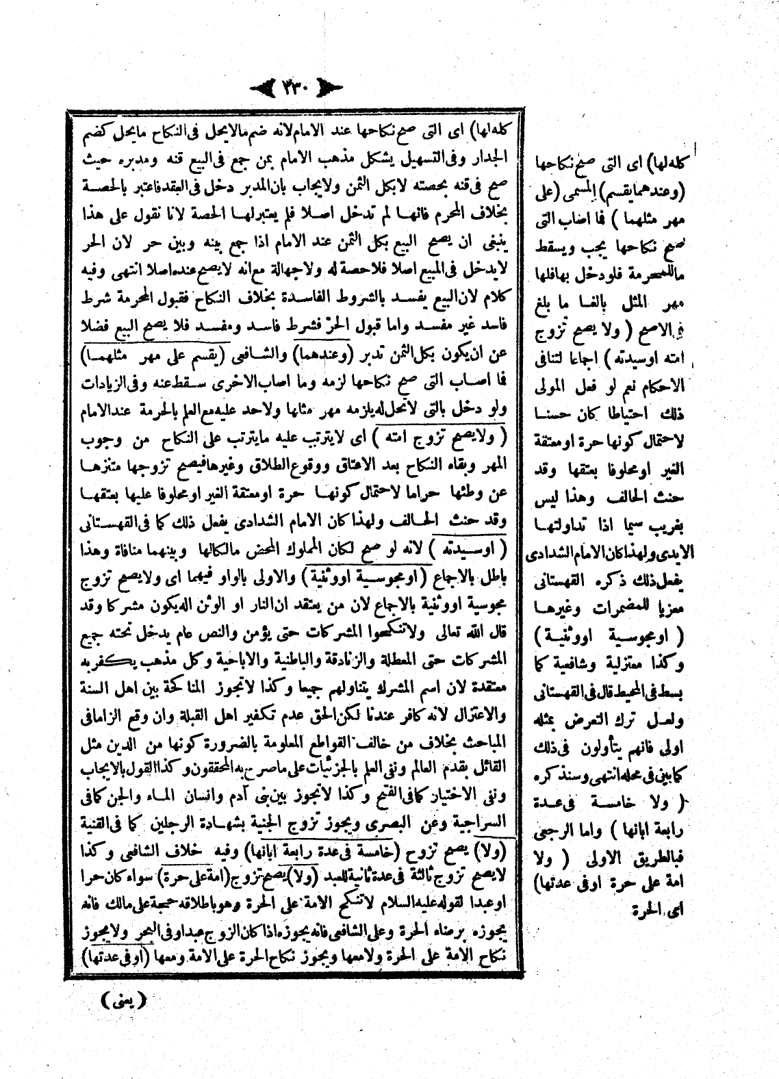 (وَلَا يَصِحُّ تَزَوُّجُ أَمَتِهِ) أَيْ لَا يَتَرَتَّبُ عَلَيْهِ مَا يَتَرَتَّبُ عَلَى النِّكَاحِ مِنْ وُجُوبِ الْمَهْرِ وَبَقَاءُ النِّكَاحِ بَعْدَ الْإِعْتَاقِ وَوُقُوعُ الطَّلَاقِ وَغَيْرُهَا فَيَصِحُّ تَزَوُّجُهَا مُتَنَزِّهًا عَنْ وَطْئِهَا حَرَامًا لِاحْتِمَالِ كَوْنِهَا حُرَّةً أَوْ مُعْتَقَةَ الْغَيْرِ، أَوْ مَحْلُوفًا عَلَيْهَا بِعِتْقِهَا وَقَدْ حَنِثَ الْحَالِفُ وَلِهَذَا كَانَ الْإِمَامُ الشَّدَّادِيُّ يَفْعَلُ ذَلِكَ كَمَا فِي الْقُهُسْتَانِيِّ (أَوْ سَيِّدَتِهِ) لِأَنَّهُ لَوْ صَحَّ لَكَانَ الْمَمْلُوكُ الْمَحْضُ مَالِكًا لَهَا وَبَيْنَهُمَا مُنَافَاةٌ وَهَذَا بَاطِلٌ بِالْإِجْمَاعِ (أَوْ مَجُوسِيَّةٍ، أَوْ وَثَنِيَّةٍ) وَالْأَوْلَى بِالْوَاوِ فِيهِمَا أَيْ وَلَا يَصِحُّ تَزَوُّجُ مَجُوسِيَّةٍ، أَوْ وَثَنِيَّةٍ بِالْإِجْمَاعِ لِأَنَّ مِنْ يَعْتَقِدُ أَنَّ النَّارَ، أَوْ الْوَثَنَ إلَهٌ يَكُونُ مُشْرِكًا وَقَدْ قَالَ اللَّهُ تَعَالَى {وَلا تَنْكِحُوا الْمُشْرِكَاتِ حَتَّى يُؤْمِنَّ} [البقرة: 221] وَالنَّصُّ عَامٌّ يَدْخُلُ تَحْتَهُ جَمِيعُ الْمُشْرِكَاتِ حَتَّى الْمُعَطِّلَةِ وَالزَّنَادِقَةِ وَالْبَاطِنِيَّةِ وَالْإِبَاحِيَّةِ وَكُلٌّ مَذْهَبٌ يَكْفُرُ بِهِ مُعْتَقِدُهُ؛ لِأَنَّ اسْمَ الْمُشْرِكِ يَتَنَاوَلُهُمْ جَمِيعًا، وَكَذَا لَا تَجُوزُ الْمُنَاكَحَةُ بَيْنَ أَهْلِ السُّنَّةِ وَالِاعْتِزَالِ؛ لِأَنَّهُ كَافِرٌ عِنْدَنَا لَكِنَّ الْحَقَّ عَدَمُ تَكْفِيرِ أَهْلِ الْقِبْلَةِ وَإِنْ وَقَعَ إلْزَامًا فِي الْمَبَاحِثِ بِخِلَافِ مَنْ خَالَفَ الْقَوَاطِعَ الْمَعْلُومَةَ بِالضَّرُورَةِ كَوْنُهَا مِنْ الدِّينِ مِثْلُ الْقَائِلِ بِقِدَمِ الْعَالَمِ وَنَفْيِ الْعِلْمِ بِالْجُزْئِيَّاتِ عَلَى مَا صَرَّحَ بِهِ الْمُحَقِّقُونَ، وَكَذَا الْقَوْلُ بِالْإِيجَابِ وَنَفْيِ الِاخْتِيَارِ كَمَا فِي الْفَتْحِ، وَكَذَا لَا تَجُوزُ بَيْنَ بَنِي آدَمَ وَإِنْسَانِ الْمَاءِ وَالْجِنِّ كَمَا فِي السِّرَاجِيَّةِ وَعَنْ الْبَصْرِيِّ وَيَجُوزُ تَزَوُّجُ الْجِنِّيَّةِ بِشَهَادَةِ الرَّجُلَيْنِ كَمَا فِي الْقُنْيَةِ.
