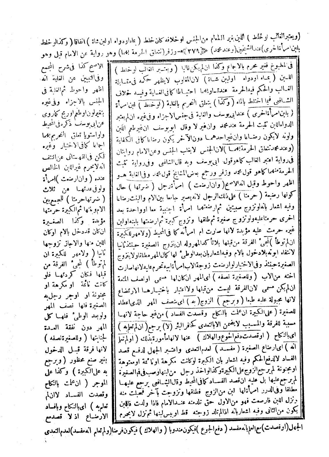 وَفِي رِوَايَةٍ تَثْبُتُ الْحُرْمَةُ مِنْهُمَا كَمَا هُوَ قَوْلُ مُحَمَّدٍ وَزُفَرَ وَرَجَّحَ بَعْضُ الْمَشَايِخِ قَوْلَ مُحَمَّدٍ.