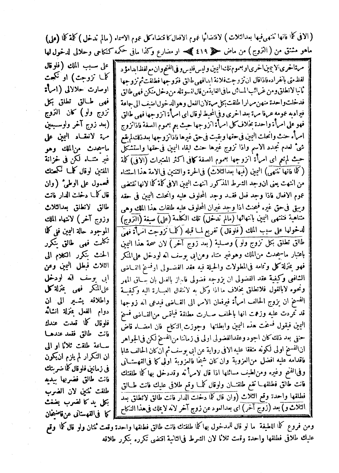 (وَإِنْ قَالَ كُلَّمَا دَخَلْت الدَّارَ فَأَنْتِ طَالِقٌ لَا تَطْلُقْ بَعْدَ الثَّلَاثِ وَ) بَعْدَ (زَوْجٍ آخَرَ) أَيْ بَعْدَ الْعَوْدِ عَنْ زَوْجٍ آخَرَ؛ لِأَنَّهُ لَا يَمْلِكُ فِي هَذَا النِّكَاحِ