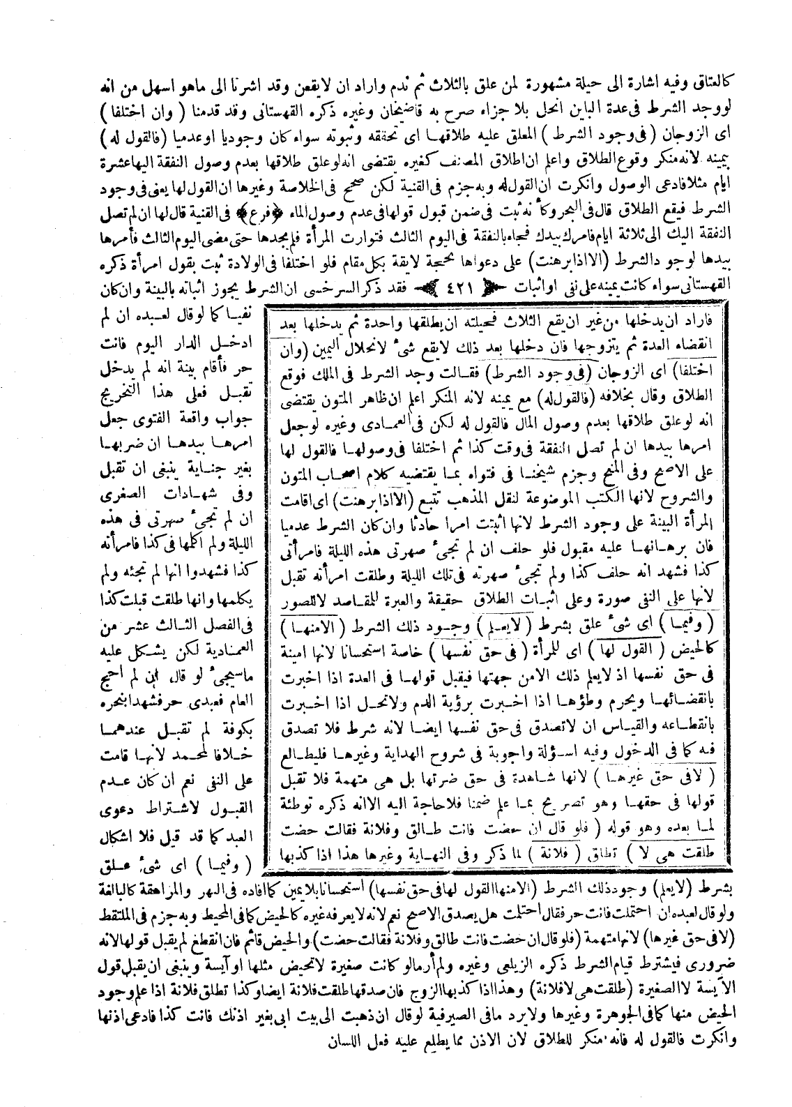 وَفِي الْمِنَحِ وَجَزَمَ شَيْخُنَا فِي فَتْوَاهُ بِمَا يَقْتَضِيهِ كَلَامُ أَصْحَابِ الْمُتُونِ وَالشُّرُوحِ؛ لِأَنَّهَا الْكُتُبُ الْمَوْضُوعَةُ لِنَقْلِ الْمَذْهَبِ تَتَبَّعْ. (إلَّا إذَا بَرْهَنَتْ) أَيْ أَقَامَتْ الْمَرْأَةُ الْبَيِّنَةَ عَلَى وُجُودِ الشَّرْطِ؛ لِأَنَّهَا أَثْبَتَتْ أَمْرًا حَادِثًا، وَإِنْ كَانَ الشَّرْطُ عَدَمِيًّا فَإِنَّ بُرْهَانَهَا عَلَيْهِ مَقْبُولٌ فَلَوْ حَلَفَ إنْ لَمْ تَجِئْ صِهْرَتِي هَذِهِ اللَّيْلَةَ فَامْرَأَتِي كَذَا فَشَهِدَ أَنَّهُ حَلَفَ كَذَا وَلَمْ تَجِئْ صِهْرَتُهُ فِي تِلْكَ اللَّيْلَةِ وَطَلُقَتْ امْرَأَتُهُ تُقْبَلُ؛ لِأَنَّهَا عَلَى النَّفْيِ صُورَةً وَعَلَى إثْبَاتِ الطَّلَاقِ حَقِيقَةً وَالْعِبْرَةُ لِلْمَقَاصِدِ لَا لِلصُّوَرِ (وَفِيمَا) أَيْ شَيْءٍ عُلِّقَ بِشَرْطٍ (لَا يُعْلَمُ) وُجُودُ ذَلِكَ الشَّرْطِ (إلَّا مِنْهَا) كَالْحَيْضِ (الْقَوْلُ لَهَا) أَيْ لِلْمَرْأَةِ (فِي حَقِّ نَفْسِهَا) خَاصَّةً اسْتِحْسَانًا؛ لِأَنَّهَا أَمِينَةٌ فِي حَقِّ نَفْسِهَا إذْ لَا يُعْلَمْ ذَلِكَ إلَّا مِنْ جِهَتِهَا فَيُقْبَلُ قَوْلُهَا فِي الْعِدَّةِ إذَا أَخْبَرَتْ بِانْقِضَائِهَا وَيَحْرُمُ وَطْؤُهَا إذَا أَخْبَرَتْ بِرُؤْيَةِ الدَّمِ وَلَا تَحِلَّ إذَا أَخْبَرَتْ انْقِطَاعَهُ وَالْقِيَاسُ أَنْ لَا تُصَدَّقَ فِي حَقِّ نَفْسِهَا أَيْضًا؛ لِأَنَّهُ شَرْطٌ فَلَا تُصَدَّقُ فِيهِ كَمَا فِي الدُّخُولِ وَفِيهِ أَسْئِلَةٌ وَأَجْوِبَةٌ فِي شُرُوحِ الْهِدَايَةِ وَغَيْرِهَا فَلْيُطَالَعْ (لَا فِي حَقِّ غَيْرِهَا) ؛ لِأَنَّهَا شَاهِدَةٌ فِي حَقِّ ضَرَّتِهَا بَلْ هِيَ مُتَّهَمَةٌ فَلَا تَقْبَلُ قَوْلَهَا فِي حَقِّهَا وَهُوَ تَصْرِيحٌ بِمَا عُلِمَ ضِمْنًا فَلَا حَاجَةَ إلَيْهِ إلَّا أَنَّهُ ذَكَرَهُ تَوْطِئَةً لِمَا بَعْدَهُ وَهُوَ قَوْلُهُ.