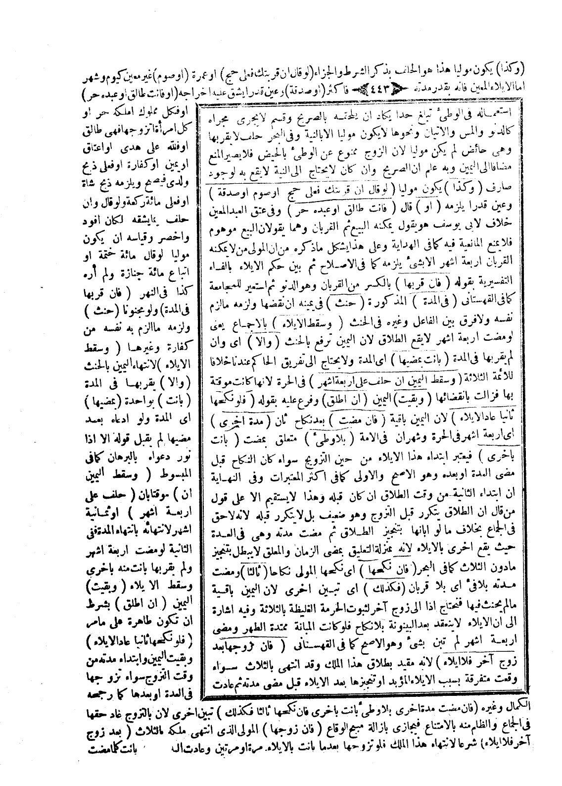 وَفِي الْبَحْرِ حَلَفَ لَا يَقْرَبُهَا وَهِيَ حَائِضٌ لَمْ يَكُنْ مُولِيًا؛ لِأَنَّ الزَّوْجَ مَمْنُوعٌ عَنْ الْوَطْءِ بِالْحَيْضِ فَلَا يَصِيرُ الْمَنْعُ مُضَافًا إلَى الْيَمِينِ وَبِهِ عُلِمَ أَنَّ الصَّرِيحَ وَإِنْ كَانَ لَا يَحْتَاجُ إلَى النِّيَّةِ لَا يَقَعُ بِهِ لِوُجُودِ صَارِفٍ (وَكَذَا) يَكُونُ مُولِيًا (لَوْ قَالَ إنْ قَرُبْتُك فَعَلَيَّ حَجٌّ أَوْ صَوْمٌ أَوْ صَدَقَةٌ) وَعَيَّنَ قَدْرًا يَلْزَمُهُ (أَوْ) قَالَ (فَأَنْتِ طَالِقٌ أَوْ عَبْدُهُ حُرٌّ) . وَفِي عِتْقِ الْعَبْدِ الْمُعَيَّنِ خِلَافٌ لِأَبِي يُوسُفَ هُوَ يَقُولُ يُمْكِنُهُ الْبَيْعُ ثُمَّ الْقُرْبَانِ، وَهُمَا يَقُولَانِ الْبَيْعُ مَوْهُومٌ فَلَا يَمْنَعُ الْمَانِعِيَّةَ فِيهِ كَمَا فِي الْهِدَايَةِ وَعَلَى هَذَا يُشْكِلُ مَا ذَكَرَهُ مِنْ أَنَّ الْمُولِيَ مَنْ لَا يُمْكِنُهُ الْقُرْبَانُ أَرْبَعَةَ أَشْهُرٍ إلَّا بِشَيْءٍ يَلْزَمُهُ كَمَا فِي الْإِصْلَاحِ ثُمَّ بَيَّنَ حُكْمَ الْإِيلَاءِ بِالْفَاءِ التَّفْسِيرِيَّةِ بِقَوْلِهِ (فَإِنْ قَرِبَهَا) بِالْكَسْرِ مِنْ الْقُرْبَانِ وَهُوَ الدُّنُوُّ ثُمَّ اُسْتُعِيرَ لِلْمُجَامَعَةِ كَمَا فِي الْقُهُسْتَانِيِّ (فِي الْمُدَّةِ) الْمَذْكُورَةِ (حَنِثَ) فِي يَمِينِهِ إنْ نَقَضَهَا وَلَزِمَهُ مَا لَزِمَ نَفْسَهُ وَلَا فَرْقَ بَيْنَ الْفَاعِلِ وَغَيْرِهِ فِي الْحِنْثِ (وَسَقَطَ الْإِيلَاءُ) بِالْإِجْمَاعِ يَعْنِي لَوْ مَضَتْ أَرْبَعَةُ أَشْهُرٍ لَا يَقَعُ الطَّلَاقُ؛ لِأَنَّ الْيَمِينَ تُرْفَعُ بِالْحِنْثِ (وَإِلَّا) أَيْ وَإِنْ لَمْ يَقْرَبْهَا فِي الْمُدَّةِ (بَانَتْ بِمُضِيِّهَا) أَيْ الْمُدَّةِ وَلَا يَحْتَاجُ إلَى تَفْرِيقِ الْحَاكِمِ عِنْدَنَا خِلَافًا لِلْأَئِمَّةِ الثَّلَاثَةِ (وَسَقَطَ الْيَمِينُ إنْ حَلَفَ عَلَى أَرْبَعَةِ أَشْهُرٍ) فِي الْحُرَّةِ؛ لِأَنَّهَا كَانَتْ مُؤَقَّتَةً بِهَا فَزَالَتْ بِانْقِضَائِهَا (وَبَقِيَتْ) الْيَمِينُ (إنْ أَطْلَقَ) وَفَرَّعَ عَلَيْهِ بِقَوْلِهِ (فَلَوْ نَكَحَهَا ثَانِيًا عَادَ الْإِيلَاءُ) ؛ لِأَنَّ الْيَمِينَ بَاقِيَةٌ (فَإِنْ مَضَتْ) بَعْدَ نِكَاحٍ ثَانٍ (مُدَّةٌ أُخْرَى) أَيْ أَرْبَعَةُ أَشْهُرٍ فِي الْحُرَّةِ وَشَهْرَانِ فِي الْأَمَةِ (بِلَا وَطْءٍ) مُتَعَلِّقٌ بِمَضَتْ (بَانَتْ بِأُخْرَى) فَيُعْتَبَرُ ابْتِدَاءُ هَذَا الْإِيلَاءِ مِنْ حِينِ التَّزْوِيجِ سَوَاءٌ كَانَ النِّكَاحُ قَبْلَ مُضِيِّ الْعِدَّةِ أَوْ بَعْدَهُ وَهُوَ الْأَصَحُّ وَالْأَوْلَى كَمَا فِي أَكْثَرِ الْمُعْتَبَرَاتِ.