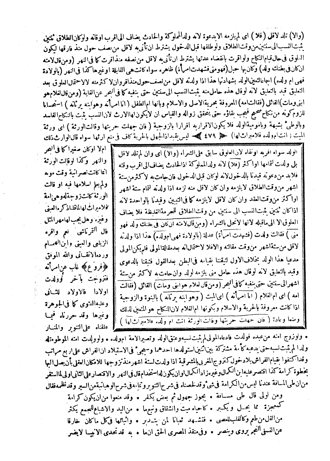 الْوَلَدُ سَوَاءٌ أَقَرَّ بِهِ أَوْ نَفَاهُ؛ لِأَنَّ الْعُلُوقَ سَابِقٌ عَلَى الشِّرَاءِ (وَإِلَّا) أَيْ، وَإِنْ لَمْ تَلِدْ لِأَقَلَّ بَلْ وَلَدَتْ لِتَمَامِهَا أَوْ أَكْثَرَ (فَلَا) ؛ لِأَنَّهُ وَلَدُ الْمَمْلُوكَةِ إذْ الْحَادِثُ يُضَافُ إلَى أَقْرَبِ وَقْتِهِ فَلَا بُدَّ مِنْ دَعْوَتِهِ قَيَّدْنَا بِالدُّخُولِ؛ لِأَنَّهُ لَوْ كَانَ قَبْلَ الدُّخُولِ فَإِنْ جَاءَتْ بِهِ لِأَكْثَرَ مِنْ سِتَّةِ أَشْهُرٍ مِنْ وَقْتِ الطَّلَاقِ لَا يَلْزَمُهُ وَإِنْ كَانَ لِأَقَلَّ مِنْهُ لَزِمَهُ إذَا وَلَدَتْهُ لِتَمَامِ سِتَّةِ أَشْهُرٍ أَوْ أَكْثَرَ مِنْ وَقْتِ الْعَقْدِ، وَإِنْ كَانَ لِأَقَلَّ لَا يَلْزَمُهُ كَمَا فِي التَّبْيِينِ وَقَيَّدْنَا بِالْوَاحِدَةِ؛ لِأَنَّهُ إذَا كَانَ ثِنْتَيْنِ يَثْبُتُ النَّسَبُ إلَى سَنَتَيْنِ مِنْ وَقْتِ الطَّلَاقِ لِلْحُرْمَةِ الْغَلِيظَةِ فَلَا يُضَافُ الْعُلُوقُ إلَّا إلَى مَا قَبْلَهُ؛ لِأَنَّهَا لَا تَحِلُّ بِالشِّرَاءِ (وَمَنْ قَالَ لِأَمَتِهِ إنْ كَانَ فِي بَطْنِك وَلَدٌ فَهُوَ مِنِّي) فَقَالَتْ وَلَدْت (فَشَهِدَتْ امْرَأَةٌ) عَدْلَةٌ (بِالْوِلَادَةِ فَهِيَ أُمُّ وَلَدِهِ) هَذَا إذَا وَلَدْته لِأَقَلَّ مِنْ سِتَّةِ أَشْهُرٍ مِنْ وَقْتِ مَقَالَتِهِ وَإِلَّا فَلَا لِاحْتِمَالِ أَنَّهُ بَعْدَ مَقَالَةِ الْمَوْلَى فَلَمْ يَكُنْ الْمَوْلَى مُدَّعِيًا هَذَا الْوَلَدَ بِخِلَافِ الْأَوَّلِ لِتَيَقُّنِنَا بِقِيَامِهِ فِي الْبَطْنِ بَعْدَ الْقَوْلِ فَتَيَقَّنَّا بِالدَّعْوَى وَقُيِّدَ بِالتَّعْلِيقِ؛ لِأَنَّهُ لَوْ قَالَ هَذِهِ حَامِلٌ مِنِّي يَلْزَمُهُ الْوَلَدُ وَإِنْ جَاءَتْ بِهِ لِأَكْثَرَ مِنْ سِتَّةِ أَشْهُرٍ إلَى سَنَتَيْنِ حَتَّى يَنْفِيَهُ كَمَا فِي الْبَحْرِ (وَمَنْ قَالَ: الْغُلَامُ هُوَ ابْنِي وَمَاتَ) الْقَائِلُ (فَقَالَتْ أُمُّهُ) أَيْ أُمُّ الْغُلَامِ (أَنَا امْرَأَتُهُ) أَيْ الْمَيِّتِ (وَهُوَ ابْنُهُ يَرِثَانِهِ) بِالْبُنُوَّةِ وَالزَّوْجِيَّةِ إذَا كَانَتْ مَعْرُوفَةً بِالْحُرِّيَّةِ وَالْإِسْلَامِ وَبِكَوْنِهَا أُمَّ الْغُلَامِ؛ لِأَنَّ النِّكَاحَ هُوَ الْمُتَعَيَّنُ لِذَلِكَ وَضْعًا وَعَادَةً (فَإِنْ جُهِلَتْ حُرِّيَّتُهَا وَقَالَتْ الْوَرَثَةُ أَنْتِ أُمُّ وَلَدِهِ فَلَا مِيرَاثَ لَهَا)