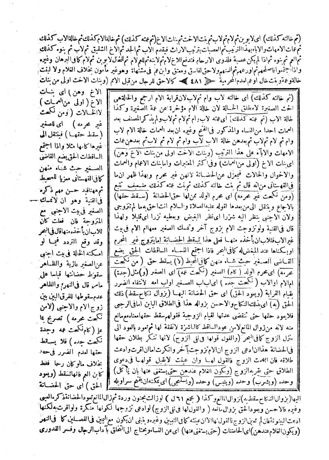 (وَ) مِثْلُ (جَدَّةِ) أُمِّ الْأُمِّ أَوْ الْأَبِ (نَكَحَتْ جَدَّهُ) أَيْ أَبَ أَبِ الصَّغِيرِ أَوْ أَبَ أُمِّهِ لِانْتِفَاءِ الضَّرَرِ بِقِيَامِ الْقَرَابَةِ (وَيَعُودُ الْحَقُّ) أَيْ حَقُّ الْحَضَانَةِ إلَيْهَا (بِزَوَالِ نِكَاحٍ سَقَطَ) ذَلِكَ الْحَقُّ (بِهِ) أَيْ بِذَلِكَ النِّكَاحِ، وَالْأَحْسَنُ بِزَوَالِهِ هَذَا فِي الطَّلَاقِ الْبَائِنِ أَمَّا فِي الرَّجْعِيِّ فَلَا يَعُودُ حَقُّهَا حَتَّى تَنْقَضِيَ عِدَّتُهَا لِقِيَامِ الزَّوْجِيَّةِ فَقَوْلُهُمْ سَقَطَ حَقُّهَا مَعْنَاهُ مَعَ مَانِعٍ مِنْهُ؛ لِأَنَّهُ مِنْ زَوَالِ الْمَانِعِ لَا مِنْ عَوْدِ السَّاقِطِ كَالنَّاشِزَةِ لَا نَفَقَةَ لَهَا ثُمَّ تَعُودُ بِالْعَوْدِ إلَى مَنْزِلِ الزَّوْجِ كَمَا فِي الْبَحْرِ (وَالْقَوْلُ قَوْلُهَا فِي نَفْيِ الزَّوْجِ) ؛ لِأَنَّهَا تُنْكِرُ بُطْلَانَ حَقِّهَا فِي الْحَضَانَةِ هَذَا إنْ ادَّعَى الزَّوْجُ أَنَّ الْأُمَّ تَزَوَّجَتْ بِآخَرَ وَأَنْكَرَتْ أَمَّا إنْ أَقَرَّتْ وَادَّعَتْ طَلَاقَهُ فَإِنْ أَبْهَمَتْ الزَّوْجَ فَالْقَوْلُ لَهَا وَإِنْ عَيَّنَتْ لَا يُقْبَلُ قَوْلُهَا فِي دَعْوَى الطَّلَاقِ حَتَّى يُقِرَّ بِهِ الزَّوْجُ (وَيَكُونُ الْغُلَامُ عِنْدَهُنَّ حَتَّى يَسْتَغْنِيَ عَنْهَا بِأَنْ يَأْكُلَ) وَحْدَهُ (وَيَشْرَبَ) وَحْدَهُ (وَيَلْبَسَ) وَحْدَهُ (وَيَسْتَنْجِيَ) أَيْ يُمْكِنَهُ أَنْ يَفْتَحَ سَرَاوِيلَهُ