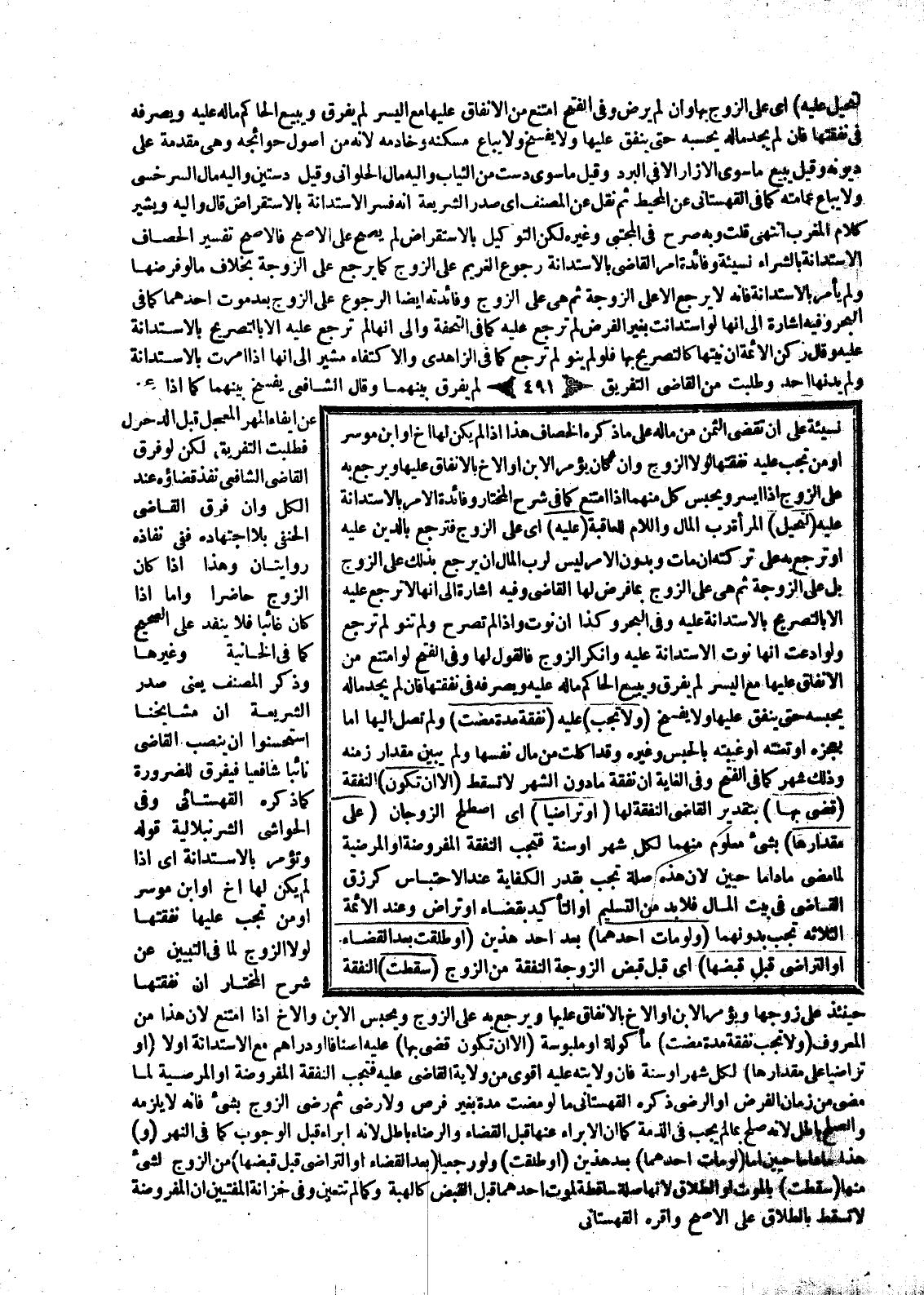 نَسِيئَةً عَلَى أَنْ تَقْضِيَ الثَّمَنَ مِنْ مَالِهِ عَلَى مَا ذَكَرَهُ الْخَصَّافُ هَذَا إذَا لَمْ يَكُنْ لَهَا أَخٌ أَوْ ابْنٌ مُوسِرٌ أَوْ مَنْ تَجِبُ عَلَيْهِ نَفَقَتُهَا لَوْلَا الزَّوْجُ، وَإِنْ كَانَ يُؤْمَرُ الِابْنُ أَوْ الْأَخُ بِالْإِنْفَاقِ عَلَيْهَا وَيَرْجِعُ بِهِ عَلَى الزَّوْجِ إذَا أَيْسَرَ وَيُحْبَسُ كُلٌّ مِنْهُمَا إذَا امْتَنَعَ كَمَا فِي شَرْحِ الْمُخْتَارِ وَفَائِدَةُ الْأَمْرِ بِالِاسْتِدَانَةِ عَلَيْهِ (لِتُحِيلَ) الْمَرْأَةُ رَبَّ الْمَالِ وَاللَّامُ لِلْعَاقِبَةِ (عَلَيْهِ) أَيْ عَلَى الزَّوْجِ فَتَرْجِعُ بِالدَّيْنِ عَلَيْهِ أَوْ تَرْجِعُ بِهِ عَلَى تَرِكَتِهِ إنْ مَاتَ، وَبِدُونِ الْأَمْرِ لَيْسَ لِرَبِّ الْمَالِ أَنْ يَرْجِعَ بِذَلِكَ عَلَى الزَّوْجِ بَلْ عَلَى الزَّوْجَةِ، ثُمَّ هِيَ عَلَى الزَّوْجِ بِمَا فَرَضَ لَهَا الْقَاضِي، وَفِيهِ إشَارَةٌ إلَى أَنَّهَا لَا تَرْجِعُ عَلَيْهِ إلَّا بِالتَّصْرِيحِ بِالِاسْتِدَانَةِ عَلَيْهِ.