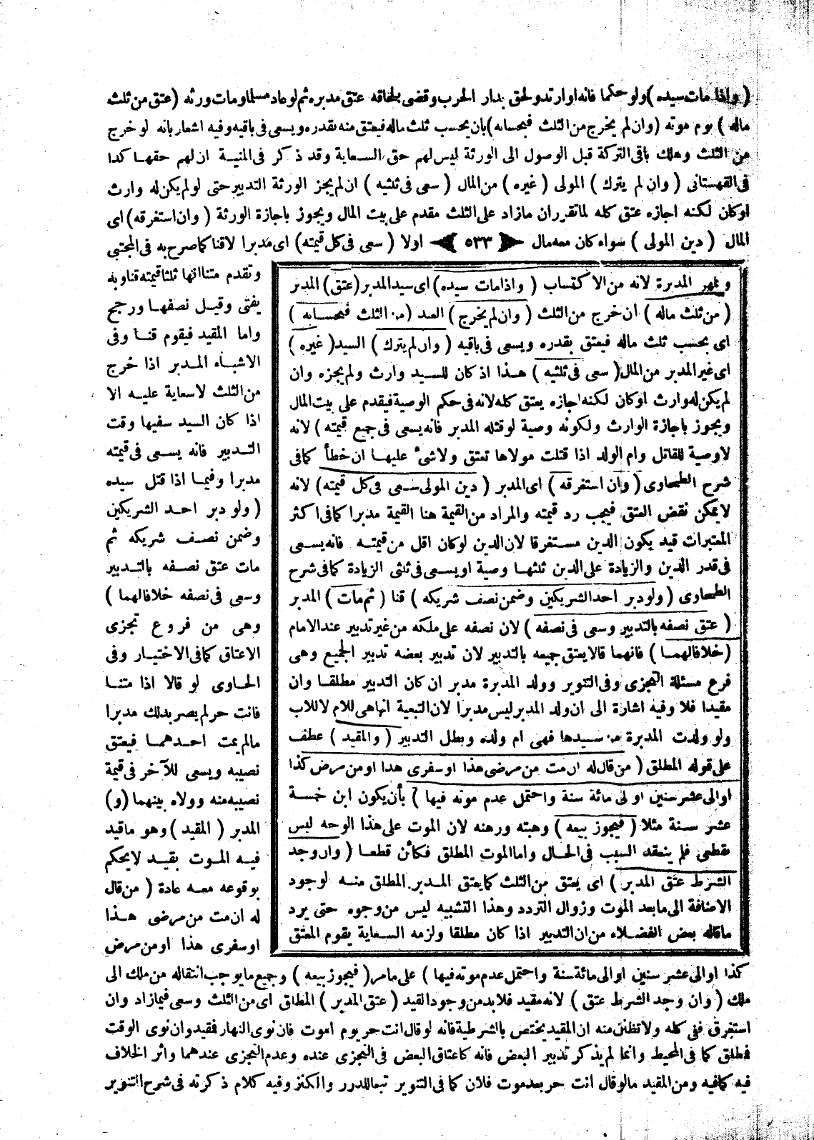 (وَإِنْ لَمْ يَخْرُجْ) الْعَبْدُ (مِنْ الثُّلُثِ فَحِسَابُهُ) أَيْ بِحَسَبِ ثُلُثِ مَالِهِ فَيُعْتَقُ بِقَدْرِهِ وَيَسْعَى فِي بَاقِيهِ (وَإِنْ لَمْ يَتْرُكْ) السَّيِّدُ (غَيْرَهُ) أَيْ غَيْرَ الْمُدَبَّرِ مِنْ الْمَالِ (سَعَى فِي ثُلُثَيْهِ) هَذَا إذَا كَانَ لِلسَّيِّدِ وَارِثٌ وَلَمْ يُجِزْهُ وَإِنْ لَمْ يَكُنْ لَهُ وَارِثٌ أَوْ كَانَ لَكِنَّهُ أَجَازَهُ يُعْتَقُ كُلُّهُ؛ لِأَنَّهُ فِي حُكْمِ الْوَصِيَّةِ فَيُقَدَّمُ عَلَى بَيْتِ الْمَالِ وَيَجُوزُ بِإِجَازَةِ الْوَارِثِ، وَلِكَوْنِهِ وَصِيَّةً لَوْ قَتَلَهُ الْمُدَبَّرُ فَإِنَّهُ (يَسْعَى فِي جَمِيعِ قِيمَتِهِ) ؛ لِأَنَّهُ لَا وَصِيَّةَ لِلْقَاتِلِ، وَأُمُّ الْوَلَدِ إذَا قَتَلَتْ مَوْلَاهَا تُعْتَقُ وَلَا شَيْءَ عَلَيْهَا إنْ خَطَأً كَمَا فِي شَرْحِ الطَّحَاوِيِّ.