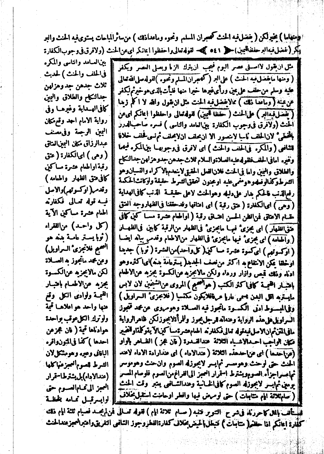 مِثْلُ أَنْ يَقُولَ لَا أُصَلِّي عَصْرَ الْيَوْمِ فَيَجِبُ أَنْ يَتْرُكَ الزِّنَا وَيُصَلِّيَ الْعَصْرَ وَيُكَفِّرَ (وَمِنْهَا مَا يُفَضَّلُ فِيهِ الْحِنْثُ) عَلَى الْبِرِّ (كَهِجْرَانِ الْمُسْلِمِ وَنَحْوِهِ) لِقَوْلِهِ - صَلَّى اللَّهُ تَعَالَى عَلَيْهِ وَسَلَّمَ - مَنْ حَلَفَ عَلَى يَمِينٍ وَرَأَى غَيْرَهَا خَيْرًا مِنْهَا فَلْيَأْتِ بِاَلَّذِي هُوَ خَيْرٌ ثُمَّ لِيُكَفِّرْ عَنْ يَمِينِهِ (وَمَا عَدَا ذَلِكَ) مِمَّا لَا يُفَضَّلُ فِيهِ الْحِنْثُ مِثْلُ أَنْ يَقُولَ وَاَللَّهِ لَا أُكَلِّمُ زَيْدًا (يُفَضَّلُ فِيهِ الْبِرُّ) عَلَى الْحِنْثِ (حِفْظًا لِلْيَمِينِ) لِقَوْلِهِ تَعَالَى {وَاحْفَظُوا أَيْمَانَكُمْ} [المائدة: 89] أَيْ عَنْ الْحِنْثِ (وَلَا فَرْقَ فِي وُجُوبِ الْكَفَّارَةِ بَيْنَ الْعَامِدِ وَالنَّاسِي) فَسَّرَهُ صَاحِبُ الدُّرَرِ بِالْمُخْطِئِ؛ لِأَنَّ الْحَلِفَ نَاسِيًا لَا يُتَصَوَّرُ إلَّا أَنْ يَحْلِفَ أَنْ لَا يَحْلِفَ ثُمَّ نَسِيَ فَحَلَفَ خِلَافًا لِلشَّافِعِيِّ (وَالْمُكْرَهِ فِي الْحَلِفِ وَالْحِنْثُ) أَيْ لَا فَرْقَ فِي وُجُوبِهَا بَيْنَ الْمُكْرَهِ فِيهِمَا وَغَيْرِهِ أَمَّا فِي الْحَلِفِ فَلِقَوْلِهِ - عَلَيْهِ الصَّلَاةُ وَالسَّلَامُ - «ثَلَاثٌ جِدُّهُنَّ جِدّ وَهَزْلُهُنَّ جِدٌّ النِّكَاحُ وَالطَّلَاقُ وَالْيَمِينُ» وَأَمَّا فِي الْحِنْثِ فَلِأَنَّ الْفِعْلَ الْحَقِيقِيَّ لَا يَنْعَدِمُ بِالْإِكْرَاهِ وَالنِّسْيَانِ وَهُوَ الشَّرْطُ وَكَذَا لَوْ فَعَلَهُ وَهُوَ مُغْمًى عَلَيْهِ أَوْ مَجْنُونٌ لِتَحَقُّقِ الشَّرْطِ حَقِيقَةً وَلَوْ كَانَتْ الْحِكْمَةُ رَفْعَ الذَّنْبِ فَالْحُكْمُ يُدَارُ عَلَى دَلِيلِهِ وَهُوَ الْحِنْثُ لَا عَلَى حَقِيقَةِ الذَّنْبِ كَمَا فِي الْهِدَايَةِ.