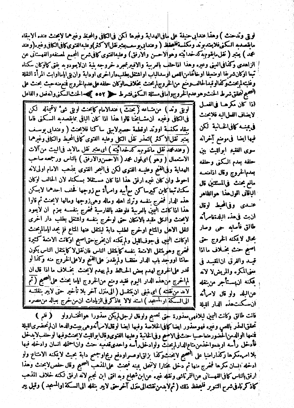وَفِي الْفَتْحِ وَعَلَيْهِ الْفَتْوَى، لَكِنْ فِي الْبَحْرِ الْفَتْوَى بِمَذْهَبِ الْإِمَامِ أَوْلَى؛ لِأَنَّهُ أَحْوَطُ وَإِنْ كَانَ غَيْرُهُ أَرْفَقَ هَذَا إذَا كَانَ مُسْتَقِلًّا بِسُكْنَاهُ؛ لِأَنَّ الْحَالِفَ لَوْ كَانَ سُكْنَاهُ تَبَعًا كَابْنٍ كَبِيرٍ سَاكِنٍ مَعَ أَبِيهِ وَامْرَأَةٍ مَعَ زَوْجِهَا فَحَلَفَ أَحَدُهُمَا لَا يَسْكُنُ هَذِهِ الدَّارَ فَخَرَجَ بِنَفْسِهِ وَتَرَكَ أَهْلَهُ وَمَالَهُ وَهِيَ زَوْجَهَا وَمَالَهَا لَا يَحْنَثُ، ثُمَّ قَالُوا هَذَا إذَا كَانَتْ الْيَمِينُ بِالْعَرَبِيَّةِ فَلَوْ عَقَدَ بِالْفَارِسِيَّةِ فَخَرَجَ بِنَفْسِهِ بِعَزْمِ أَنْ لَا يَعُودَ لَا يَحْنَثُ، وَالْكُلُّ مُقَيَّدٌ بِالْإِمْكَانِ، حَتَّى لَوْ خَرَجَ بِنَفْسِهِ وَاشْتَغَلَ بِطَلَبِ دَارٍ أُخْرَى لِنَقْلِ الْأَهْلِ، وَالْمَتَاعِ، أَوْ خَرَجَ لِطَلَبِ دَابَّةٍ لِيَنْتَقِلَ عَنْهَا الْمَتَاعَ فَلَمْ يَجِدْ أَيَّامًا لَمْ يَحْنَثْ، أَوْ كَانَتْ الْيَمِينُ فِي جَوْفِ اللَّيْلِ وَلَمْ يُمْكِنْهُ أَنْ يَخْرُجَ حَتَّى أَصْبَحَ، أَوْ كَانَتْ الْأَمْتِعَةُ كَثِيرَةً فَخَرَجَ، وَهُوَ يَنْتَقِلُ الْأَمْتِعَةَ بِنَفْسِهِ كَمَا يَنْتَقِلُ النَّاسُ فَإِنْ نَقَلَ لَا كَمَا يَنْتَقِلُ النَّاسُ يَكُونُ حَانِثًا، أَوْ وَجَدَ بَابَ الدَّارِ مُغْلَقًا وَلَمْ يَقْدِرْ عَلَى الْفَتْحِ وَلَا عَلَى الْخُرُوجِ مِنْهُ وَكَذَا لَوْ قَدَرَ عَلَى الْخُرُوجِ لِهَدْمِ بَعْضِ الْحَائِطِ وَلَمْ يَهْدِمْ لَا يَحْنَثُ بِخِلَافِ مَا إذَا قَالَ إنْ لَمْ أَخْرُجْ مِنْ هَذِهِ الدَّارِ الْيَوْمَ فَقُيِّدَ وَمُنِعَ مِنْ الْخُرُوجِ أَيَّامًا يَحْنَثُ عَلَى الصَّحِيحِ (ثُمَّ لَا بُدَّ مِنْ نُقْلَتِهِ) أَيْ يَنْبَغِي أَنْ يَنْتَقِلَ (إلَى مَنْزِلٍ آخَرَ بِلَا تَأْخِيرٍ حَتَّى لَا يَبَرَّ بِنُقْلَتِهِ إلَى السِّكَّةِ أَوْ الْمَسْجِدِ) اسْتِدْلَالًا بِمَا ذُكِرَ فِي الزِّيَادَاتِ أَنَّ مَنْ خَرَجَ بِعِيَالِهِ مِنْ مِصْرِهِ