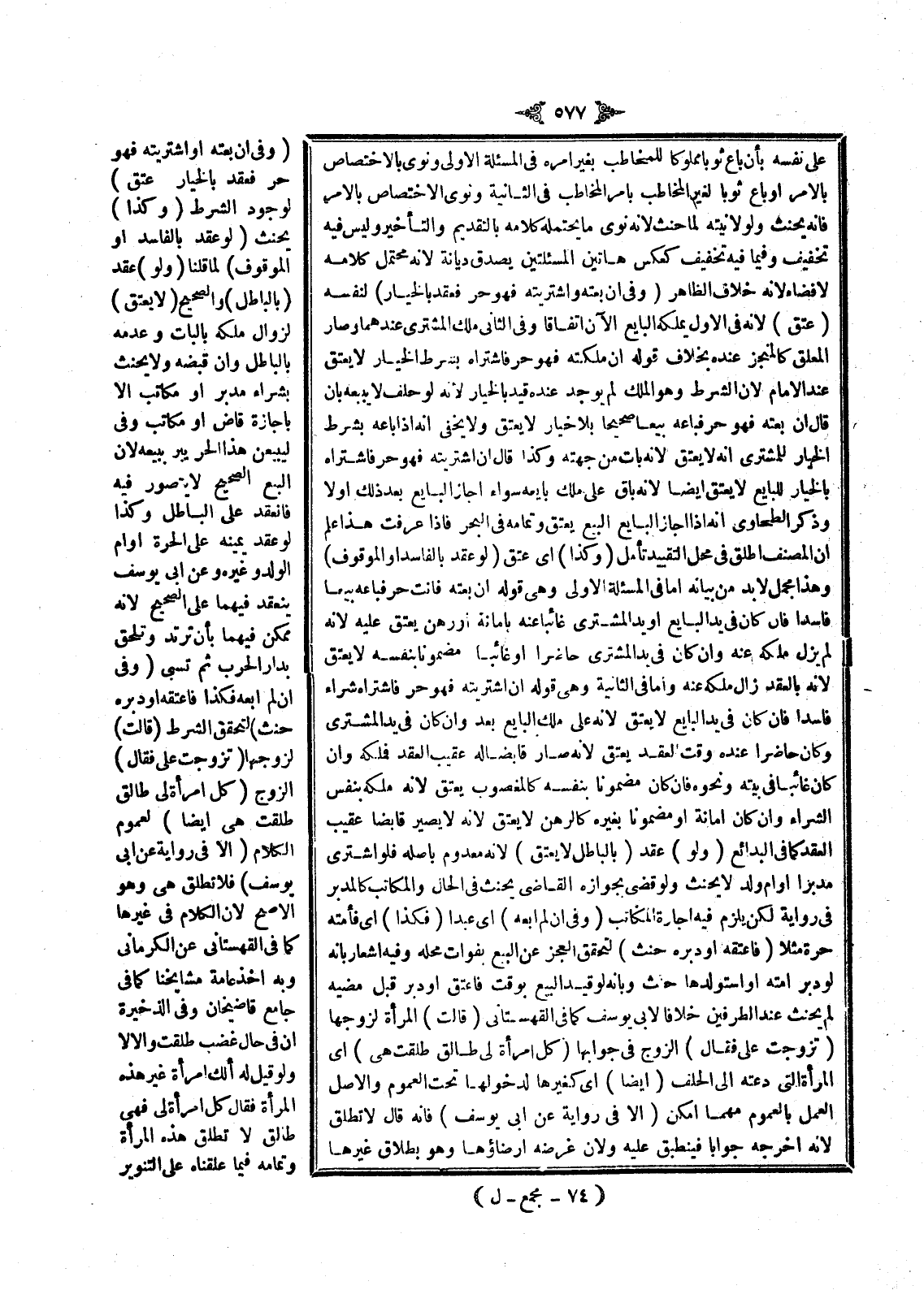 عَلَى نَفْسِهِ بِأَنْ بَاعَ ثَوْبًا مَمْلُوكًا لِلْمُخَاطَبِ بِغَيْرِ أَمْرِهِ فِي الْمَسْأَلَةِ الْأُولَى وَنَوَى بِالِاخْتِصَاصِ بِالْأَمْرِ أَوْ بَاعَ ثَوْبًا لِغَيْرِ الْمُخَاطَبِ فِي الثَّانِيَةِ وَنَوَى الِاخْتِصَاصَ بِالْأَمْرِ فَإِنَّهُ يَحْنَثُ وَلَوْلَا نِيَّتُهُ لَمَا حَنِثَ؛ لِأَنَّهُ نَوَى مَا يَحْتَمِلُهُ كَلَامُهُ بِالتَّقْدِيمِ، وَالتَّأْخِيرِ وَلَيْسَ فِيهِ تَخْفِيفٌ وَفِيمَا فِيهِ تَخْفِيفٌ كَعَكْسِ هَاتَيْنِ الْمَسْأَلَتَيْنِ يُصَدَّقُ دِيَانَةً؛ لِأَنَّهُ مُحْتَمَلُ كَلَامِهِ، لَا قَضَاءً؛ لِأَنَّهُ خِلَافُ الظَّاهِرِ (وَفِي إنْ بِعْته وَاشْتَرَيْته فَهُوَ حُرٌّ فَعَقْدٌ بِالْخِيَارِ) لِنَفْسِهِ (عَتَقَ) ؛ لِأَنَّهُ فِي الْأَوَّلِ يَمْلِكُهُ الْبَائِعُ الْآنَ اتِّفَاقًا وَفِي الثَّانِي مَلَكَ الْمُشْتَرِي عِنْدَهُمَا وَصَارَ الْمُعَلَّقُ كَالْمُنْجَزِ عِنْدَهُ بِخِلَافِ قَوْلِهِ إنْ مَلَكْته فَهُوَ حُرٌّ فَاشْتَرَاهُ بِشَرْطِ الْخِيَارِ لَا يُعْتَقُ عِنْدَ الْإِمَامِ؛ لِأَنَّ الشَّرْطَ، وَهُوَ الْمِلْكُ لَمْ يُوجَدْ عِنْدَهُ قَيْدٌ بِالْخِيَارِ؛ لِأَنَّهُ لَوْ حَلَفَ لَا يَبِيعُهُ بِأَنْ قَالَ إنْ بِعْته فَهُوَ حُرٌّ فَبَاعَهُ بَيْعًا صَحِيحًا بِلَا خِيَارٍ لَا يُعْتَقُ وَلَا يَخْفَى أَنَّهُ إذَا بَاعَهُ بِشَرْطِ الْخِيَارِ لِلْمُشْتَرِي أَنَّهُ لَا يُعْتَقُ؛ لِأَنَّهُ بَاتَ مِنْ جِهَتِهِ وَكَذَا قَالَ إنْ اشْتَرَيْته فَهُوَ حُرٌّ فَاشْتَرَاهُ بِالْخِيَارِ لِلْبَائِعِ لَا يُعْتَقُ أَيْضًا؛ لِأَنَّهُ بَاقٍ عَلَى مِلْكِ بَائِعِهِ سَوَاءٌ أَجَازَ الْبَائِعُ بَعْدَ ذَلِكَ أَوْ لَا وَذَكَرَ الطَّحَاوِيُّ أَنَّهُ إذَا جَازَ الْبَائِعُ الْبَيْعَ يُعْتَقُ وَتَمَامُهُ فِي الْبَحْرِ فَإِذَا عَرَفْت هَذَا عُلِمَ أَنَّ الْمُصَنِّفَ أَطْلَقَ فِي مَحَلِّ التَّقْيِيدِ تَأَمَّلْ.