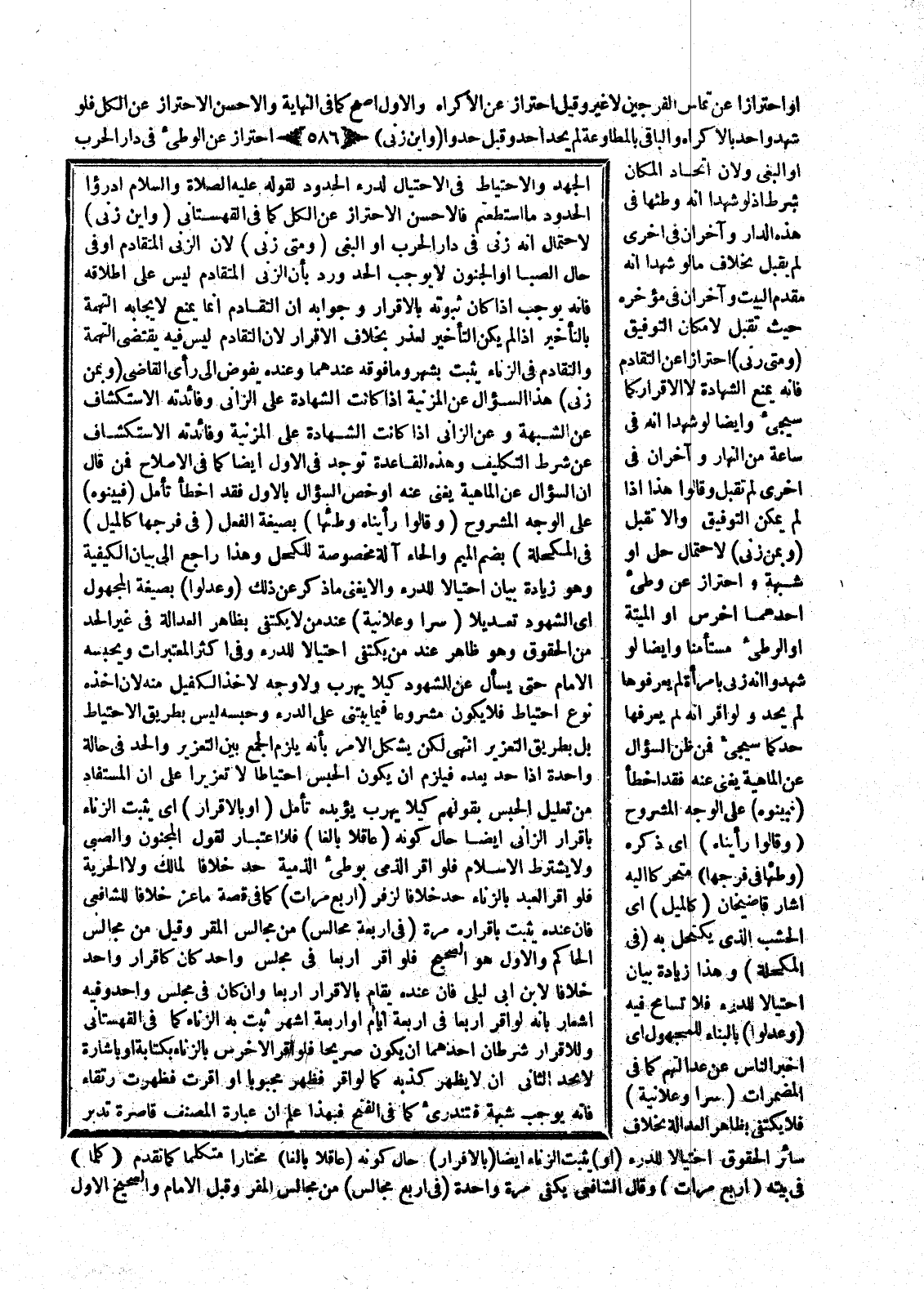 الْجُهْدِ، وَالِاحْتِيَاطِ فِي الِاحْتِيَالِ لِدَرْءِ الْحُدُودِ لِقَوْلِهِ - عَلَيْهِ الصَّلَاةُ وَالسَّلَامُ - «ادْرَءُوا الْحُدُودَ مَا اسْتَطَعْتُمْ» فَالْأَحْسَنُ الِاحْتِرَازُ عَنْ الْكُلِّ كَمَا فِي الْقُهُسْتَانِيِّ (وَأَيْنَ زَنَى) لِاحْتِمَالِ أَنَّهُ زَنَى فِي دَارِ الْحَرْبِ أَوْ الْبَغْيِ (وَمَتَى زَنَى) ؛ لِأَنَّ الزِّنَى الْمُتَقَادِمُ أَوْ فِي حَالِ الصِّبَا أَوْ الْجُنُونِ لَا يُوجِبُ الْحَدَّ وَرُدَّ بِأَنَّ الزِّنَى الْمُتَقَادِمُ لَيْسَ عَلَى إطْلَاقِهِ فَإِنَّهُ يُوجِبُ إذَا كَانَ ثُبُوتُهُ بِالْإِقْرَارِ وَجَوَابُهُ أَنَّ التَّقَادُمَ إنَّمَا يَمْنَعُ لِإِيجَابِهِ التُّهْمَةَ بِالتَّأْخِيرِ إذَا لَمْ يَكُنْ التَّأْخِيرُ لِعُذْرٍ بِخِلَافِ الْإِقْرَارِ؛ لِأَنَّ التَّقَادُمَ لَيْسَ فِيهِ مَا يَقْتَضِي التُّهْمَةَ، وَالتَّقَادُمُ فِي الزِّنَا يَثْبُتُ بِشَهْرٍ وَمَا فَوْقَهُ عِنْدَهُمَا وَعِنْدَهُ يُفَوَّضُ إلَى رَأْيِ الْقَاضِي (وَبِمَنْ زَنَى) هَذَا السُّؤَالُ عَنْ الْمُزَنِيَّةِ إذَا كَانَتْ الشَّهَادَةُ عَلَى الزَّانِي وَفَائِدَتُهُ الِاسْتِكْشَافُ عَنْ الشُّبْهَةِ وَعَنْ الزَّانِي إذَا كَانَتْ الشَّهَادَةُ عَلَى الْمُزَنِيَّةِ وَفَائِدَتُهُ الِاسْتِكْشَافُ عَنْ شَرْطِ التَّكْلِيفِ وَهَذِهِ الْقَاعِدَةُ تُوجَدُ فِي الْأَوَّلِ أَيْضًا كَمَا فِي الْإِصْلَاحِ فَمَنْ قَالَ إنَّ السُّؤَالَ عَنْ الْمَاهِيَّةِ يُغْنِي عَنْهُ أَوْ خَصَّ السُّؤَالَ بِالْأَوَّلِ فَقَدْ أَخْطَأَ تَأَمَّلْ (فَبَيَّنُوهُ) عَلَى الْوَجْهِ الْمَشْرُوحِ (وَقَالُوا رَأَيْنَاهُ وَطِئَهَا) بِصِيغَةِ الْفِعْلِ (فِي فَرْجِهَا كَالْمِيلِ فِي الْمُكْحُلَةِ) بِضَمِّ الْمِيمِ، وَالْحَاءِ آلَةٌ مَخْصُوصَةٌ لِلْكُحْلِ، وَهَذَا رَاجِعٌ إلَى بَيَانِ الْكَيْفِيَّةِ، وَهُوَ زِيَادَةُ بَيَانٍ احْتِيَالًا لِلدَّرْءِ وَإِلَّا يُغْنِي مَا ذُكِرَ عَنْ ذَلِكَ (وَعُدِّلُوا) بِصِيغَةِ الْمَجْهُولِ أَيْ الشُّهُودُ تَعْدِيلًا (سِرًّا وَعَلَانِيَةً) عِنْدَ مَنْ لَا يَكْتَفِي بِظَاهِرِ الْعَدَالَةِ فِي غَيْرِ الْحَدِّ مِنْ الْحُقُوقِ، وَهُوَ ظَاهِرٌ عِنْدَ مَنْ يَكْتَفِي احْتِيَالًا لِلدَّرْءِ وَفِي أَكْثَرِ الْمُعْتَبَرَاتِ وَيَحْبِسُهُ الْإِمَامُ حَتَّى يَسْأَلَ عَنْ الشُّهُودِ كَيْ لَا يَهْرُبَ وَلَا وَجْهَ لِأَخْذِ الْكَفِيلِ مِنْهُ؛ لِأَنَّ أَخْذَهُ نَوْعُ احْتِيَاطٍ فَلَا يَكُونُ مَشْرُوعًا فِيمَا يُبْتَنَى عَلَى الدَّرْءِ وَحَبْسُهُ لَيْسَ بِطَرِيقِ الِاحْتِيَاطِ، بَلْ بِطَرِيقِ التَّعْزِيرِ انْتَهَى لَكِنْ يُشْكِلُ الْأَمْرُ بِأَنَّهُ يَلْزَمُ الْجَمْعُ بَيْنَ التَّعْزِيرِ، وَالْحَدِّ فِي حَالَةٍ وَاحِدَةٍ إذَا حُدَّ بَعْدَهُ فَيَلْزَمُ أَنْ يَكُونَ الْحَبْسُ احْتِيَاطًا لَا تَعْزِيرًا عَلَى أَنَّ الْمُسْتَفَادَ مِنْ تَعْلِيلِ الْحَبْسِ بِقَوْلِهِمْ كَيْ لَا يَهْرُبَ يُؤَيِّدُهُ تَأَمَّلْ.