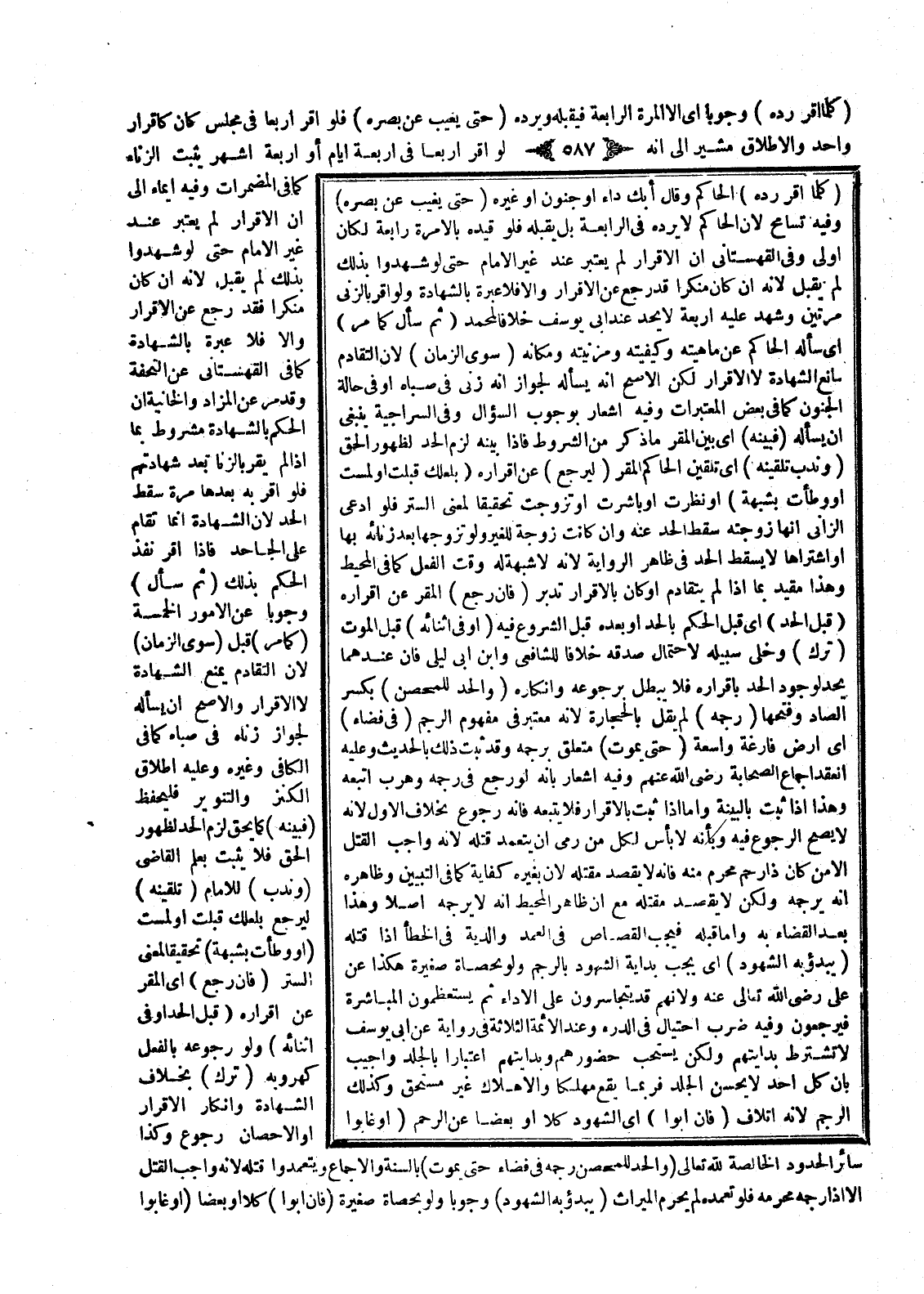 وَفِي الْقُهُسْتَانِيِّ أَنَّ الْإِقْرَارَ لَمْ يُعْتَبَرْ عِنْدَ غَيْرِ الْإِمَامِ حَتَّى لَوْ شَهِدُوا بِذَلِكَ لَمْ يُقْبَلْ؛ لِأَنَّهُ إنْ كَانَ مُنْكِرًا قَدْ رَجَعَ عَنْ الْإِقْرَارِ وَإِلَّا فَلَا عِبْرَةَ بِالشَّهَادَةِ وَلَوْ أَقَرَّ بِالزِّنَى مَرَّتَيْنِ وَشَهِدَ عَلَيْهِ أَرْبَعَةٌ لَا يُحَدُّ عِنْدَ أَبِي يُوسُفَ خِلَافًا لِمُحَمَّدٍ (ثُمَّ سَأَلَ كَمَا مَرَّ) أَيْ سَأَلَهُ الْحَاكِمُ عَنْ مَاهِيَّتِه وَكَيْفِيَّتِهِ وَمَزْنِيَّتِهِ وَمَكَانِهِ (سِوَى الزَّمَانِ) ؛ لِأَنَّ التَّقَادُمَ مَانِعُ الشَّهَادَةِ لَا الْإِقْرَارُ لَكِنَّ الْأَصَحَّ أَنَّهُ يَسْأَلُهُ لِجَوَازِ أَنَّهُ زَنَى فِي صِبَاهُ أَوْ فِي حَالَةِ الْجُنُونِ كَمَا فِي بَعْضِ الْمُعْتَبَرَاتِ وَفِيهِ إشْعَارٌ بِوُجُوبِ السُّؤَالِ.