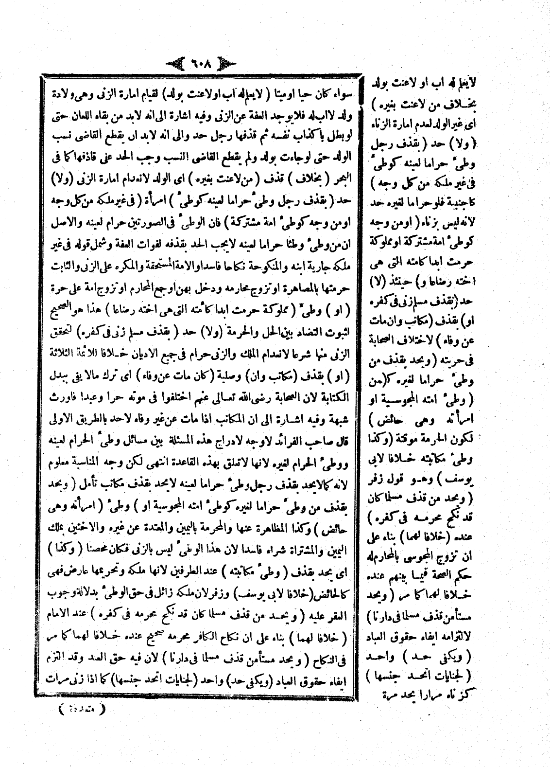 (وَيُحَدُّ مَنْ قَذَفَ مُسْلِمًا كَانَ قَدْ نَكَحَ مُحَرَّمَةً فِي كُفْرِهِ) عِنْدَ الْإِمَامِ (خِلَافًا لَهُمَا) بِنَاءً عَلَى أَنَّ نِكَاحَ الْكَافِرِ مُحَرَّمَةً صَحِيحٌ عِنْدَهُ خِلَافًا لَهُمَا كَمَا مَرَّ فِي النِّكَاحِ.