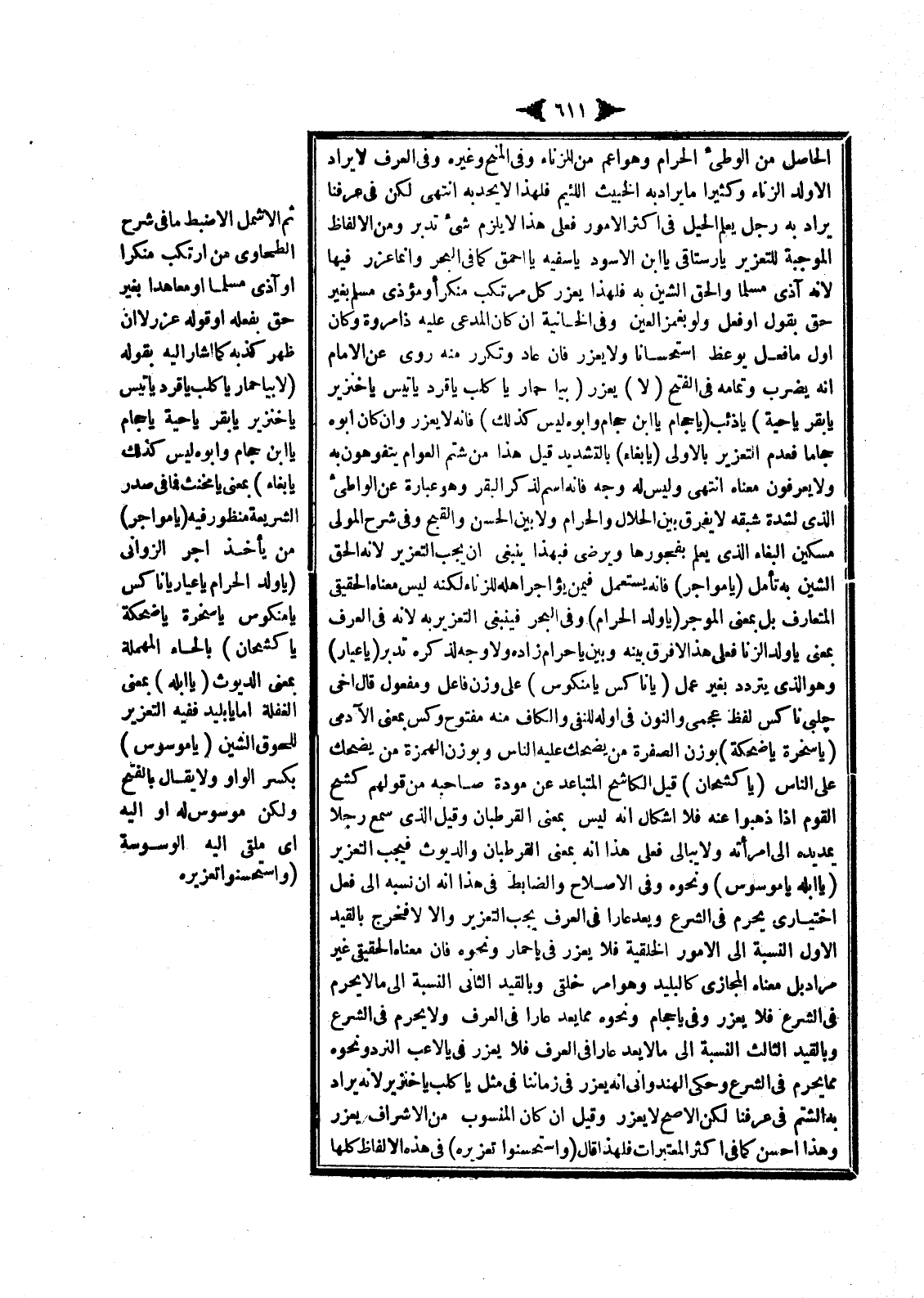 وَفِي الْإِصْلَاحِ، وَالضَّابِطُ فِي هَذَا أَنَّهُ إنْ نَسَبَهُ إلَى فِعْلٍ اخْتِيَارِيٍّ يَحْرُمُ فِي الشَّرْعِ وَيُعَدُّ عَارًا فِي الْعُرْفِ يَجِبُ التَّعْزِيرُ وَإِلَّا لَا فَخَرَجَ بِالْقَيْدِ الْأَوَّلِ النِّسْبَةُ إلَى الْأُمُورِ الْخُلُقِيَّةِ فَلَا يُعَزَّرُ فِي يَا حِمَارُ وَنَحْوِهِ فَإِنَّ مَعْنَاهُ الْحَقِيقِيَّ غَيْرُ مُرَادٍ، بَلْ مَعْنَاهُ الْمَجَازِيُّ كَالْبَلِيدِ، وَهُوَ أَمْرٌ خُلُقِيٌّ وَبِالْقَيْدِ الثَّانِي النِّسْبَةُ إلَى مَا لَا يَحْرُمُ فِي الشَّرْعِ فَلَا يُعَزَّرُ، وَفِي يَا حَجَّامُ وَنَحْوِهِ مِمَّا يُعَدُّ عَارًا فِي الْعُرْفِ وَلَا يَحْرُمُ فِي الشَّرْعِ وَبِالْقَيْدِ الثَّالِثِ النِّسْبَةُ إلَى مَا لَا يُعَدُّ عَارًا فِي الْعُرْفِ فَلَا يُعَزَّرُ فِي يَا لَاعِبَ النَّرْدِ وَنَحْوِهِ مِمَّا يَحْرُمُ فِي الشَّرْعِ وَحَكَى الْهِنْدُوَانِيُّ أَنَّهُ يُعَزَّرُ فِي زَمَانِنَا فِي مِثْلِ يَا كَلْبُ يَا خِنْزِيرُ؛ لِأَنَّهُ يُرَادُ بِهِ الشَّتْمُ فِي عُرْفِنَا لَكِنْ الْأَصَحُّ لَا يُعَزَّرُ وَقِيلَ إنْ كَانَ الْمَنْسُوبُ مِنْ الْأَشْرَافِ يُعَزَّرُ وَهَذَا أَحْسَنُ كَمَا فِي أَكْثَرِ الْمُعْتَبَرَاتِ؛ فَلِهَذَا قَالَ (وَاسْتَحْسَنُوا تَعْزِيرَهُ) فِي هَذِهِ الْأَلْفَاظِ كُلِّهَا