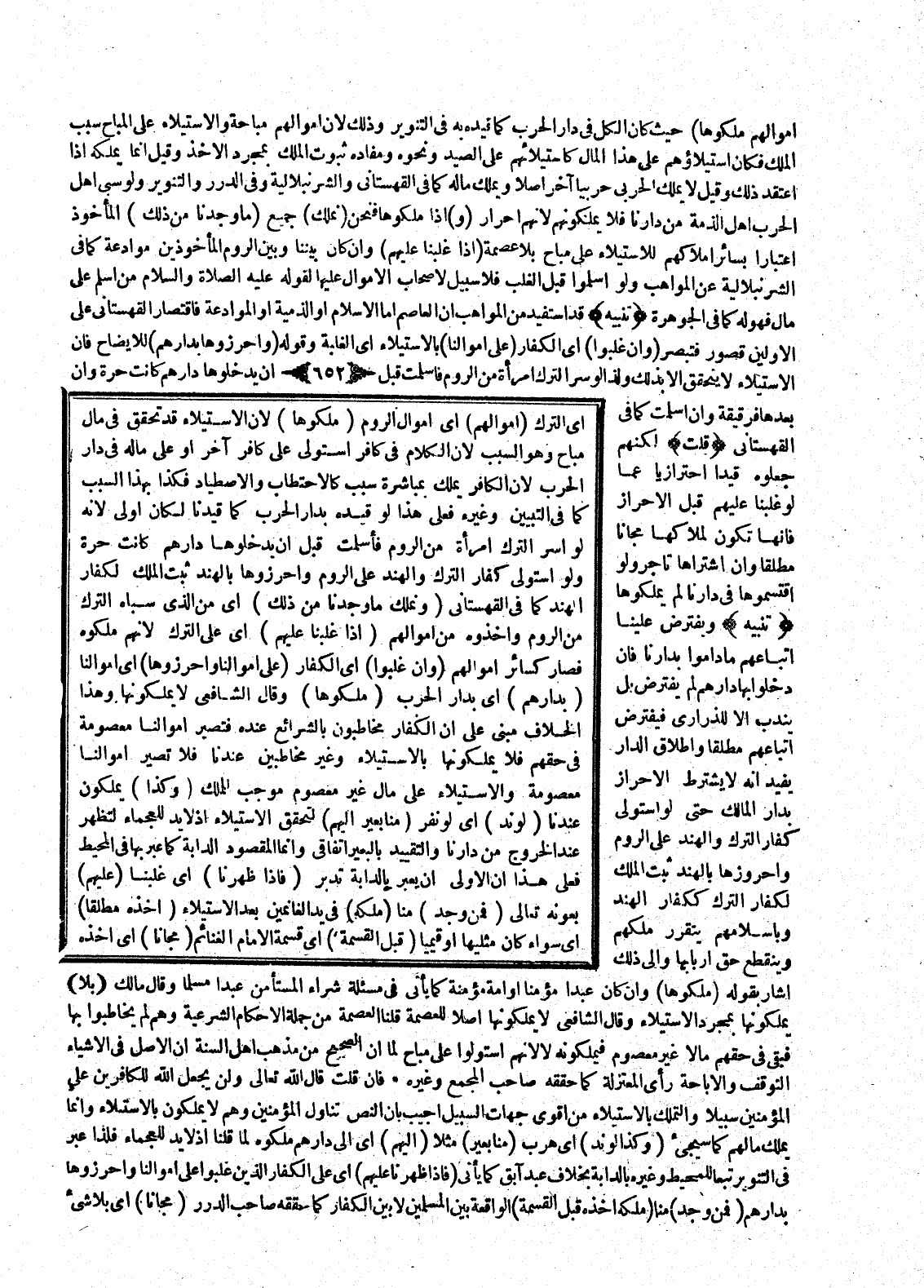 أَيْ التُّرْكُ (أَمْوَالَهُمْ) أَيْ أَمْوَالَ الرُّومِ (مَلَكُوهَا) لِأَنَّ الِاسْتِيلَاءَ قَدْ تَحَقَّقَ فِي مَالٍ مُبَاحٍ وَهُوَ السَّبَبُ لِأَنَّ الْكَلَامَ فِي كَافِرٍ اسْتَوْلَى عَلَى كَافِرٍ آخَرَ أَوْ عَلَى مَالِهِ فِي دَارِ الْحَرْبِ لِأَنَّ الْكَافِرَ يَمْلِكُ بِمُبَاشَرَةِ سَبَبٍ كَالِاحْتِطَابِ وَالِاصْطِيَادِ فَكَذَا بِهَذَا السَّبَبِ كَمَا فِي التَّبْيِينِ وَغَيْرِهِ فَعَلَى هَذَا لَوْ قَيَّدَهُ بِدَارِ الْحَرْبِ كَمَا قَيَّدْنَا لَكَانَ أَوْلَى لِأَنَّهُ لَوْ أَسَرَ التُّرْكُ امْرَأَةً مِنْ الرُّومِ فَأَسْلَمَتْ قَبْلَ أَنْ يُدْخِلُوهَا دَارَهُمْ كَانَتْ حُرَّةً وَلَوْ اسْتَوْلَى كُفَّارُ التُّرْكِ وَالْهِنْدِ عَلَى الرُّومِ وَأَحْرَزُوهَا بِالْهِنْدِ ثَبَتَ الْمِلْكُ لِكُفَّارِ الْهِنْدِ كَمَا فِي الْقُهُسْتَانِيِّ (وَنَمْلِكُ مَا وَجَدْنَا مِنْ ذَلِكَ) أَيْ مِنْ الَّذِي سَبَاهُ التُّرْكُ مِنْ الرُّومِ وَأَخَذُوهُ مِنْ أَمْوَالِهِمْ (إذَا غَلَبْنَا عَلَيْهِمْ) أَيْ عَلَى التُّرْكِ لِأَنَّهُمْ مَلَكُوهُ فَصَارَ كَسَائِرِ أَمْوَالِهِمْ.