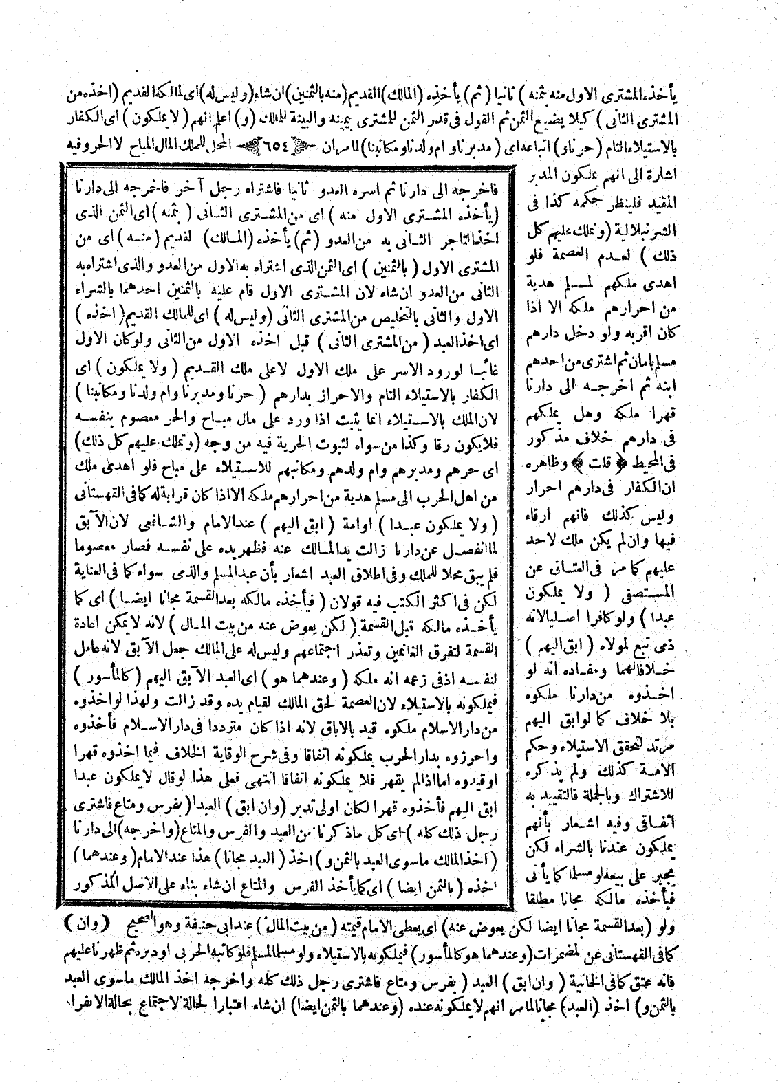 فَأَخْرَجَهُ إلَى دَارِنَا ثُمَّ أَسَرَهُ الْعَدُوُّ ثَانِيًا فَاشْتَرَاهُ رَجُلٌ آخَرُ فَأَخْرَجَهُ إلَى دَارِنَا (يَأْخُذُهُ الْمُشْتَرِي الْأَوَّلُ مِنْهُ) أَيْ مِنْ الْمُشْتَرِي الثَّانِي (بِثَمَنِهِ) أَيْ الثَّمَنِ الَّذِي أَخَذَ التَّاجِرُ الثَّانِي بِهِ مِنْ الْعَدُوِّ (ثُمَّ) يَأْخُذُهُ (الْمَالِكُ) الْقَدِيمُ (مِنْهُ) أَيْ مِنْ الْمُشْتَرِي الْأَوَّلِ (بِالثَّمَنِ) أَيْ الثَّمَنِ الَّذِي اشْتَرَاهُ بِهِ الْأَوَّلُ مِنْ الْعَدُوِّ وَاَلَّذِي اشْتَرَاهُ بِهِ الثَّانِي مِنْ الْعَدُوِّ إنْ شَاءَ لِأَنَّ الْمُشْتَرِي الْأَوَّلَ قَامَ عَلَيْهِ بِالثَّمَنَيْنِ أَحَدُهُمَا بِالشِّرَاءِ الْأَوَّلِ وَالثَّانِي بِالتَّخْلِيصِ مِنْ الْمُشْتَرِي الثَّانِي (وَلَيْسَ لَهُ) أَيْ لِلْمَالِكِ الْقَدِيمِ (أَخْذُهُ) أَيْ أَخْذُ الْعَبْدِ (مِنْ الْمُشْتَرِي الثَّانِي) قَبْلَ أَخْذِهِ الْأَوَّلِ مِنْ الثَّانِي وَلَوْ كَانَ الْأَوَّلُ غَائِبًا لِوُرُودِ الْأَسْرِ عَلَى مِلْكِ الْأَوَّلِ لَا عَلَى مِلْكِ الْقَدِيمِ.
