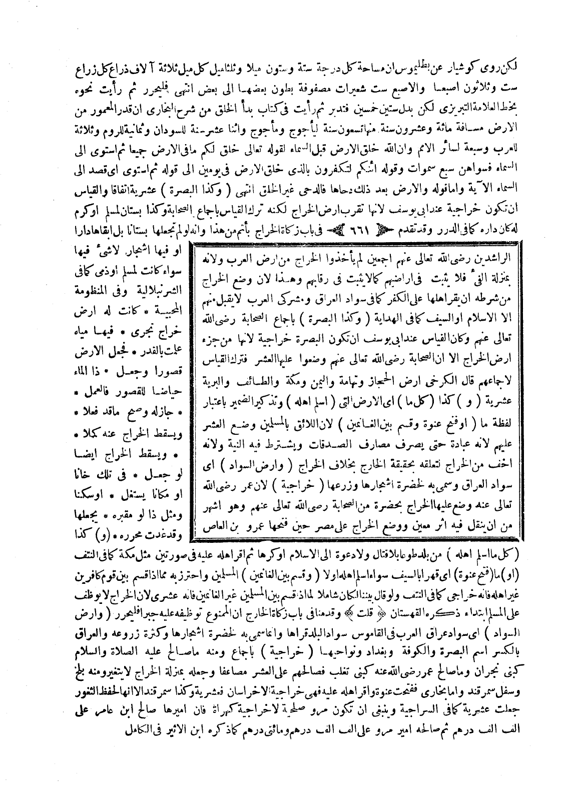(وَ) كَذَا (كُلُّ مَا) أَيْ الْأَرْضِ الَّتِي (أَسْلَمَ أَهْلُهُ) وَتَذْكِيرُ الضَّمِيرِ بِاعْتِبَارِ لَفْظَةِ مَا (أَوْ فُتِحَ عَنْوَةً وَقُسِمَ بَيْنَ الْغَانِمِينَ) لِأَنَّ اللَّائِقَ بِالْمُسْلِمِينَ وَضْعُ الْعُشْرِ عَلَيْهِمْ لِأَنَّهُ عِبَادَةٌ حَتَّى يُصْرَفَ مَصَارِفَ الصَّدَقَاتِ وَيُشْتَرَطَ فِيهِ النِّيَّةُ وَلِأَنَّهُ أَخَفُّ مِنْ الْخَرَاجِ لِتَعَلُّقِهِ بِحَقِيقَةِ الْخَارِجِ بِخِلَافِ الْخَرَاجِ (وَأَرْضُ السَّوَادِ) أَيْ سَوَادِ الْعِرَاقِ وَسُمِّيَ بِهِ لِخُضْرَةِ أَشْجَارِهَا وَزَرْعِهَا (خَرَاجِيَّةٌ) لِأَنَّ عُمَرَ - رَضِيَ اللَّهُ تَعَالَى عَنْهُ - وَضَعَ عَلَيْهَا الْخَرَاجَ بِحَضْرَةٍ مِنْ الصَّحَابَةِ - رَضِيَ اللَّهُ تَعَالَى عَنْهُمْ - وَهُوَ أَشْهَرُ مِنْ أَنْ يُنْقَلَ فِيهِ أَثَرٌ مُعَيَّنٌ وَوَضَعَ الْخَرَاجَ عَلَى مِصْرَ حِينَ فَتَحَهَا عَمْرُو بْنُ الْعَاصِ