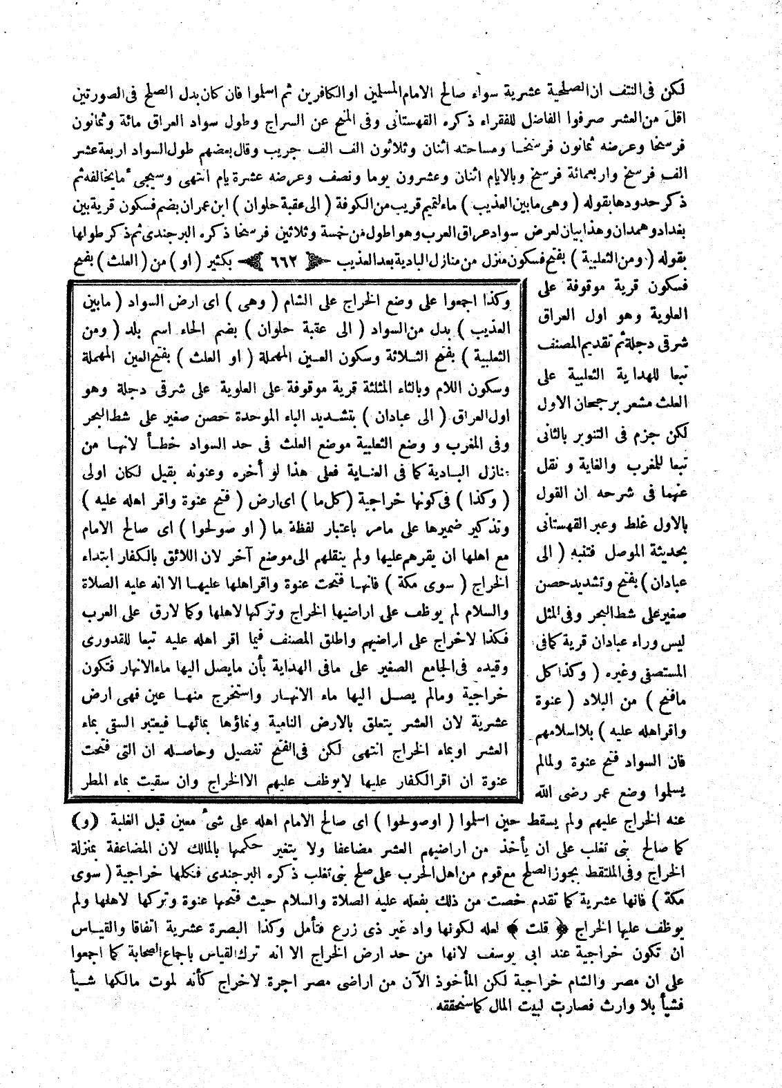 وَكَذَا أَجْمَعُوا عَلَى وَضْعِ الْخَرَاجِ عَلَى الشَّامِ (وَهِيَ) أَيْ أَرْضُ السَّوَادِ (مَا بَيْنَ الْعُذَيْبِ) بَدَلٌ مِنْ السَّوَادِ (إلَى عَقَبَةِ حُلْوَانَ) بِضَمِّ الْحَاءِ اسْمُ بَلَدٍ (وَمِنْ الثَّعْلَبِيَّةِ) بِفَتْحِ الثَّلَاثَةِ وَسُكُونِ الْعَيْنِ الْمُهْمَلَةِ (أَوْ الْعَلْثِ) بِفَتْحِ الْعَيْنِ الْمُهْمَلَةِ وَسُكُونِ اللَّامِ وَبِالثَّاءِ الْمُثَلَّثَةِ: قَرْيَةٌ مَوْقُوفَةٌ عَلَى الْعَلَوِيَّةِ عَلَى شَرْقِيِّ دِجْلَةَ وَهُوَ أَوَّلُ الْعِرَاقِ (إلَى عَبَّادَانَ) بِتَشْدِيدِ الْبَاءِ الْمُوَحَّدَةِ حِصْنٌ صَغِيرٌ عَلَى شَطِّ الْبَحْرِ.