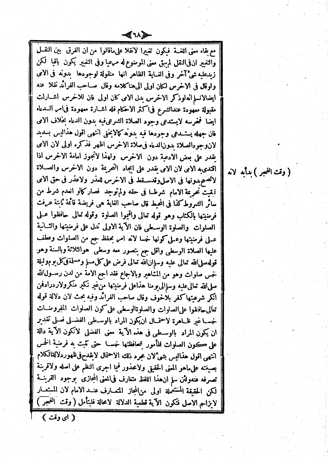 وَقَالَ صَاحِبُ الْفَرَائِدِ: وَفِيهِ بَحْثٌ؛ لِأَنَّ دَلَالَةَ قَوْله تَعَالَى {حَافِظُوا عَلَى الصَّلَوَاتِ وَالصَّلاةِ الْوُسْطَى} [البقرة: 238] عَلَى كَوْنِ الصَّلَوَاتِ الْمَفْرُوضَاتِ خَمْسًا غَيْرُ ظَاهِرَةٍ لِاحْتِمَالِ أَنْ يَكُونَ الْمُرَادُ بِالْوُسْطَى الْفُضْلَى فَعَلَى تَقْدِيرِ أَنْ يَكُونَ الْمُرَادُ بِالْوُسْطَى فِي هَذِهِ الْآيَةِ مَعْنَى الْفُضْلَى لَا تَكُونُ الْآيَةُ دَالَّةً عَلَى كَوْنِ الصَّلَوَاتِ الْمَأْمُورِ بِمُحَافَظَتِهَا خَمْسًا حَتَّى تَثْبُتَ بِهِ فَرْضِيَّةُ الْخَمْسِ انْتَهَى