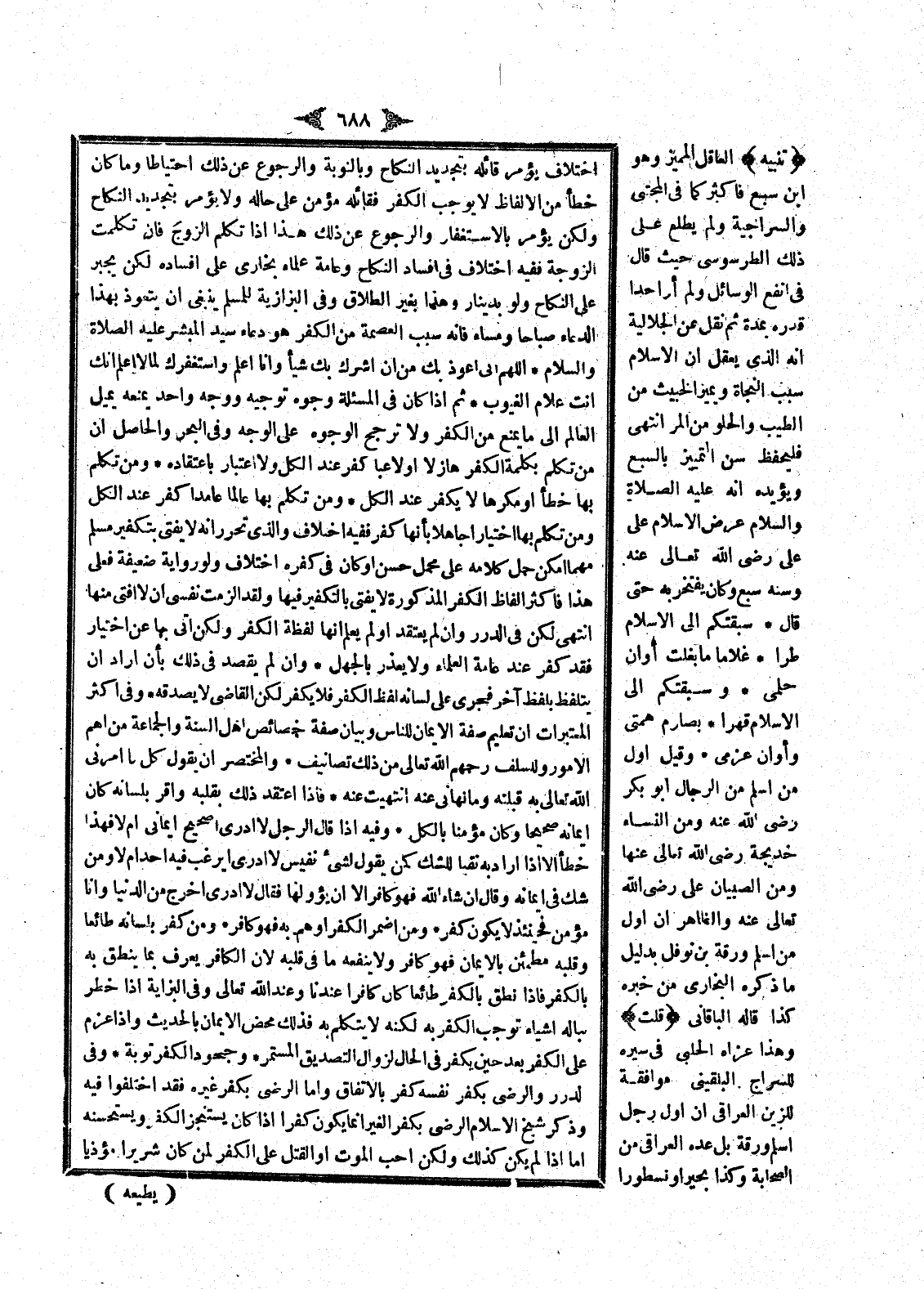 وَفِي أَكْثَرِ الْمُعْتَبَرَاتِ أَنَّ تَعْلِيمَ صِفَةِ الْإِيمَانِ لِلنَّاسِ وَبَيَانَ صِفَةِ خَصَائِصِ أَهْلِ السُّنَّةِ وَالْجَمَاعَةِ مِنْ أَهَمِّ الْأُمُورِ وَلِلسَّلَفِ رَحِمَهُمْ اللَّهُ تَعَالَى مِنْ ذَلِكَ تَصَانِيفُ وَالْمُخْتَصَرُ أَنْ يَقُولَ كُلُّ مَا أَمَرَنِي اللَّهُ تَعَالَى بِهِ قَبِلْته وَمَا نَهَانِي عَنْهُ انْتَهَيْت عَنْهُ فَإِذَا اعْتَقَدَ ذَلِكَ بِقَلْبِهِ وَأَقَرَّ بِلِسَانِهِ كَانَ إيمَانُهُ صَحِيحًا وَكَانَ مُؤْمِنًا بِالْكُلِّ وَفِيهِ إذَا قَالَ الرَّجُلُ لَا أَدْرِي أَصَحِيحٌ إيمَانِي أَمْ لَا فَهَذَا خَطَأٌ إلَّا إذَا أَرَادَ بِهِ نَفْيًا لِلشَّكِّ كَمَنْ يَقُولُ لِشَيْءٍ نَفِيسٍ لَا أَدْرِي أَيَرْغَبُ فِيهِ أَحَدٌ أَمْ لَا وَمَنْ شَكَّ فِي إيمَانِهِ وَقَالَ إنْ شَاءَ اللَّهُ فَهُوَ كَافِرٌ إلَّا أَنْ يُؤَوِّلَهَا فَقَالَ لَا أَدْرِي أَأَخْرُجُ مِنْ الدُّنْيَا وَأَنَا مُؤْمِنٌ فَحِينَئِذٍ لَا يَكُونُ كَفَرَ وَمَنْ أَضْمَرَ الْكُفْرَ أَوْ هَمَّ بِهِ فَهُوَ كَافِرٌ وَمَنْ كَفَرَ بِلِسَانِهِ طَائِعًا وَقَلْبُهُ مُطْمَئِنٌّ بِالْإِيمَانِ فَهُوَ كَافِرٌ وَلَا يَنْفَعُهُ مَا فِي قَلْبِهِ لِأَنَّ الْكَافِرَ يَعْرِفُ بِمَا يَنْطِقُ بِهِ بِالْكُفْرِ فَإِذَا نَطَقَ بِالْكُفْرِ طَائِعًا كَانَ كَافِرًا عِنْدَنَا وَعِنْدَ اللَّهِ تَعَالَى.
