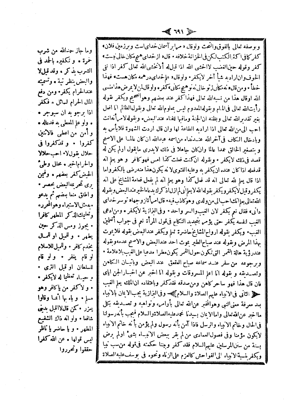 وَيَكْفُرُ بِقَوْلِهِ رَأَيْت اللَّهَ تَعَالَى فِي الْمَنَامِ وَبِقَوْلِهِ الْمَعْدُومُ لَيْسَ بِمَعْلُومِ اللَّهِ تَعَالَى وَبِقَوْلِ الظَّالِمِ أَنَا أَفْعَلُ بِغَيْرِ تَقْدِيرِ اللَّهِ تَعَالَى وَبِظَنِّهِ أَنَّ الْجَنَّةَ وَمَا فِيهَا لِلْفَنَاءِ عِنْدَ الْبَعْضِ.