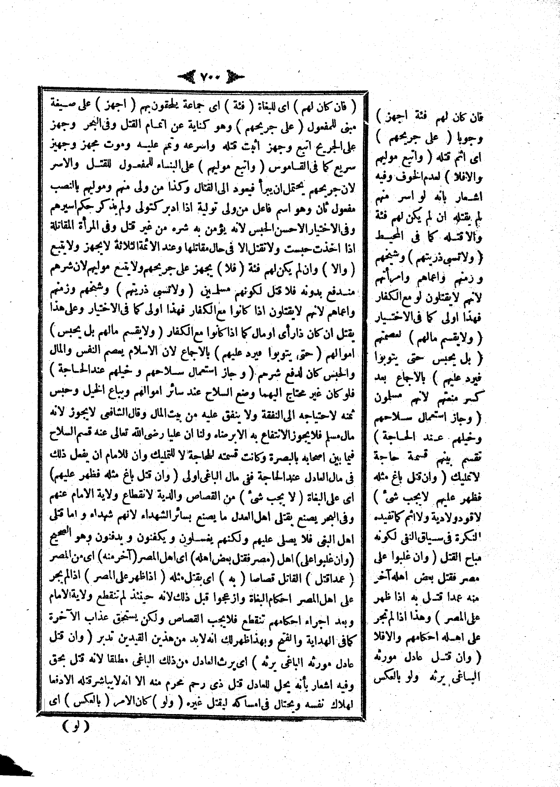 (وَإِنْ قَتَلَ بَاغٍ مِثْلَهُ فَظَهَرَ عَلَيْهِمْ) أَيْ عَلَى الْبُغَاةِ (لَا يَجِبُ شَيْءٌ) مِنْ الْقِصَاصِ وَالدِّيَةِ لِانْقِطَاعِ وِلَايَةِ الْإِمَامِ عَنْهُمْ.