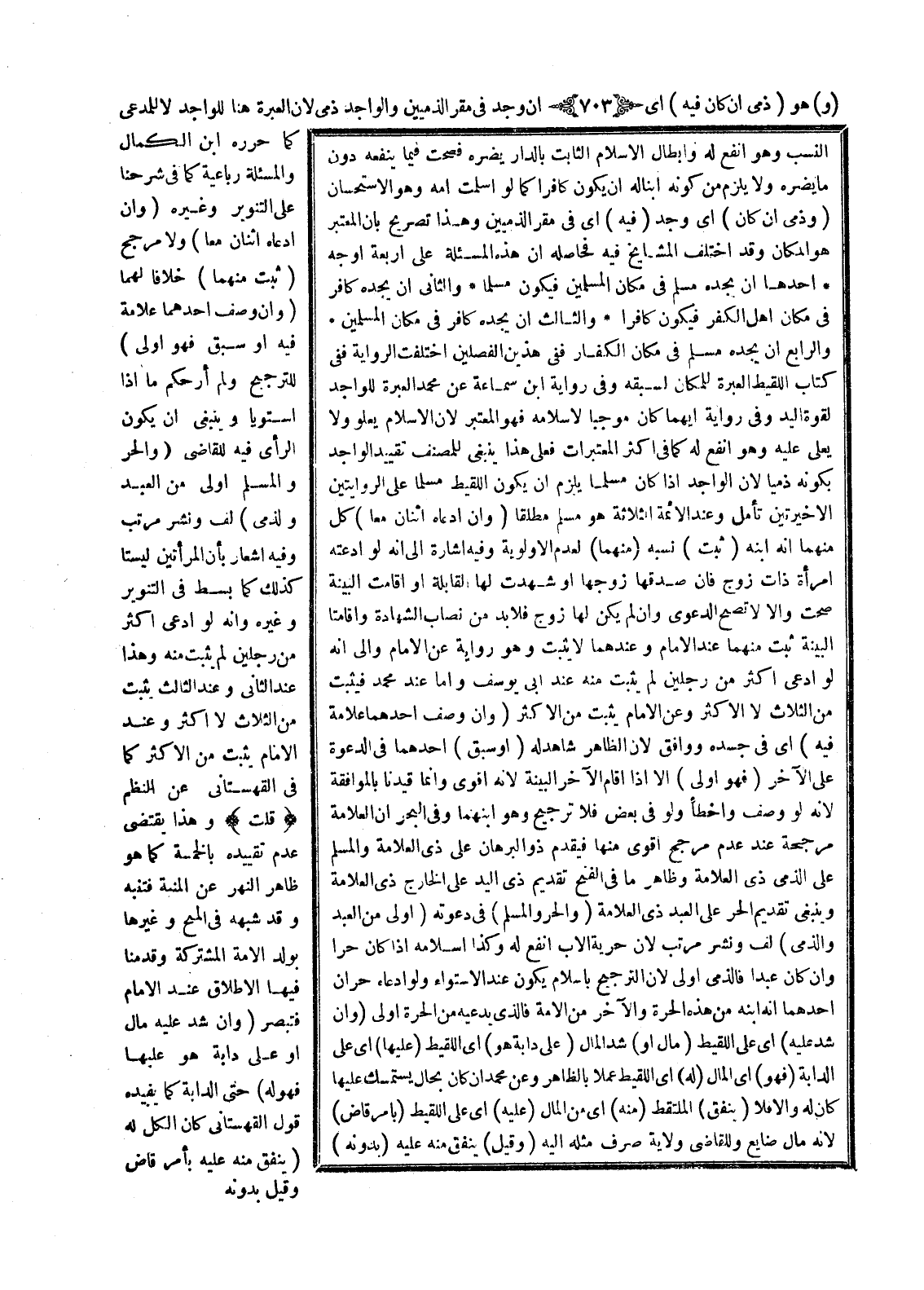 وَفِي رِوَايَةٍ أَيُّهُمَا كَانَ مُوجِبًا لِإِسْلَامِهِ فَهُوَ الْمُعْتَبَرُ لِأَنَّ الْإِسْلَامَ يَعْلُو وَلَا يُعْلَى عَلَيْهِ وَهُوَ أَنْفَعُ لَهُ كَمَا فِي أَكْثَرِ الْمُعْتَبَرَاتِ فَعَلَى هَذَا يَنْبَغِي لِلْمُصَنِّفِ تَقْيِيدُ الْوَاجِدِ بِكَوْنِهِ ذِمِّيًّا لِأَنَّ الْوَاجِدَ إذَا كَانَ مُسْلِمًا يَلْزَمُ أَنْ يَكُونَ اللَّقِيطُ مُسْلِمًا عَلَى الرِّوَايَتَيْنِ الْأَخِيرَتَيْنِ، تَأَمَّلْ. وَعِنْدَ الْأَئِمَّةِ الثَّلَاثَةِ هُوَ مُسْلِمٌ مُطْلَقًا.