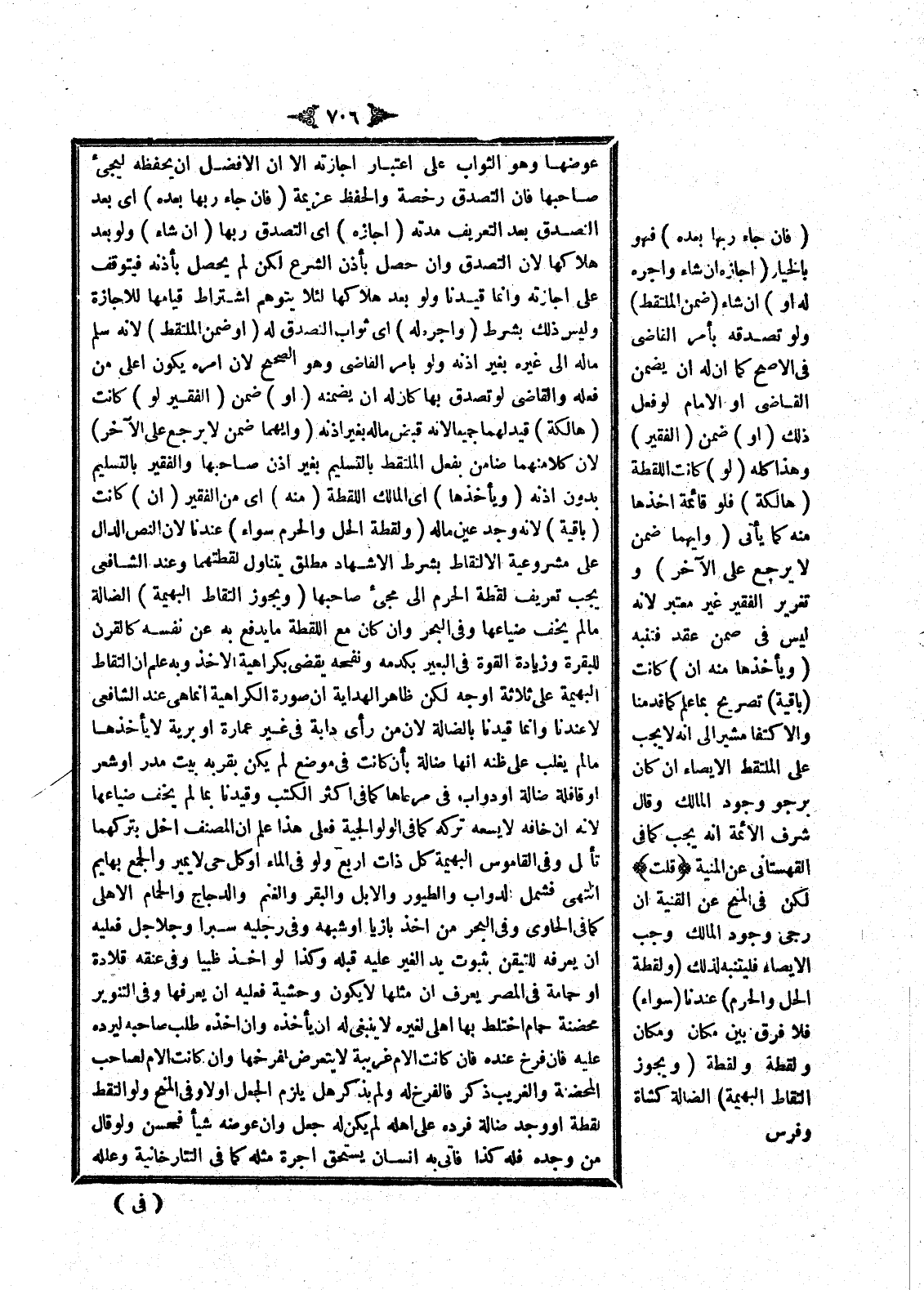 وَفِي الْبَحْرِ وَإِنْ كَانَ مَعَ اللُّقَطَةِ مَا يَدْفَعُ بِهِ عَنْ نَفْسِهِ كَالْقَرْنِ لِلْبَقَرَةِ وَزِيَادَةِ الْقُوَّةِ فِي الْبَعِيرِ بِكَدْمِهِ وَنَفْحِهِ يُقْضَى بِكَرَاهِيَةِ الْأَخْذِ وَبِهِ عُلِمَ أَنَّ الْتِقَاطَ الْبَهِيمَةِ عَلَى ثَلَاثَةِ أَوْجُهٍ لَكِنَّ ظَاهِرَ الْهِدَايَةِ أَنَّ صُورَةَ الْكَرَاهِيَةِ إنَّمَا هِيَ عِنْدَ الشَّافِعِيِّ لَا عِنْدَنَا وَإِنَّمَا قَيَّدْنَا بِالضَّالَّةِ لِأَنَّ مَنْ رَأَى دَأْبَةً فِي غَيْرِ عِمَارَةٍ أَوْ بَرِّيَّةٍ لَا يَأْخُذُهَا مَا لَمْ يَغْلِبْ عَلَى ظَنِّهِ أَنَّهَا ضَالَّةٌ بِأَنْ كَانَتْ فِي مَوْضِعٍ لَمْ يَكُنْ بِقُرْبِهِ بَيْتُ مَدَرٍ أَوْ شَعْرٍ أَوْ قَافِلَةٍ ضَالَّةٍ أَوْ دَوَابُّ فِي مَرْعَاهَا كَمَا فِي أَكْثَرِ الْكُتُبِ وَقَيَّدْنَا بِمَا لَمْ يَخَفْ ضَيَاعَهَا لِأَنَّهُ إنْ خَافَهُ لَا يَسَعُهُ تَرْكُهُ كَمَا فِي الْوَلْوَالِجِيَّةِ فَعَلَى هَذَا عُلِمَ أَنَّ الْمُصَنِّفَ أَخَلَّ بِتَرْكِهِمَا تَأَمَّلْ.